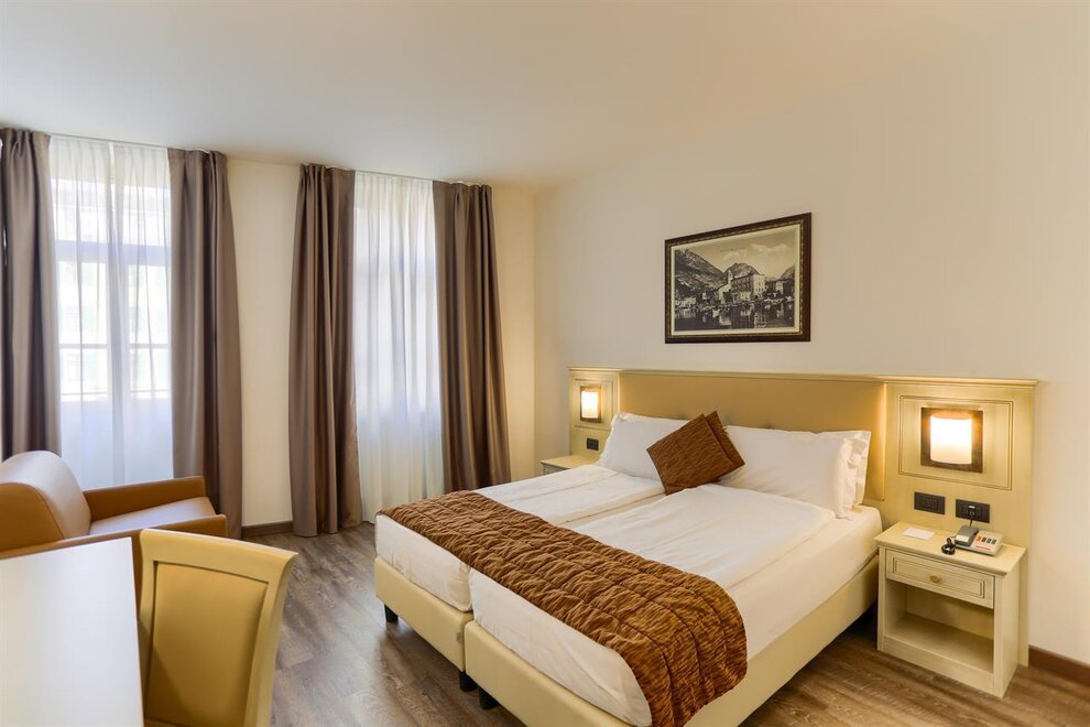 Room with a panoramic view on the lake. Some rooms have balcony. Dimensions: mq 19-23.