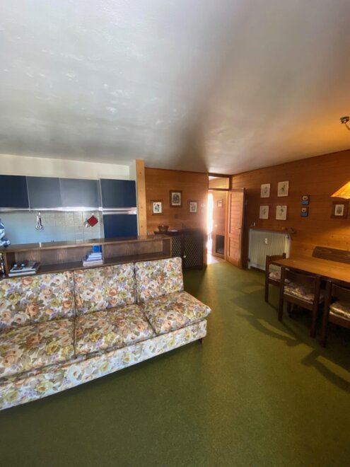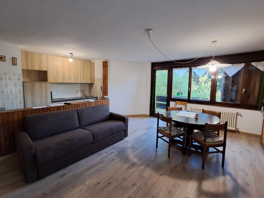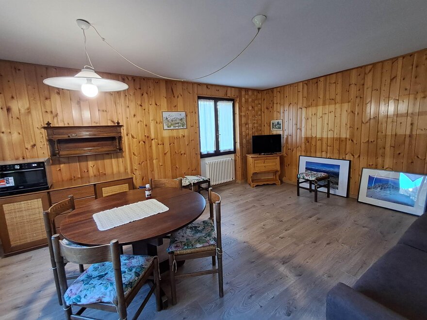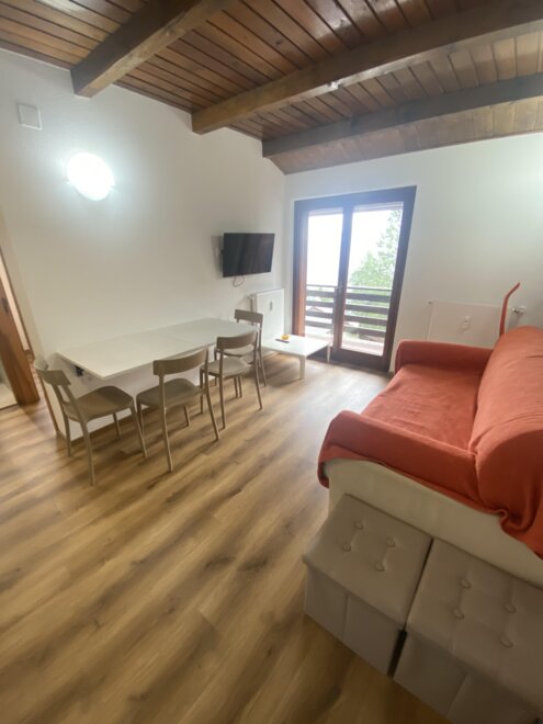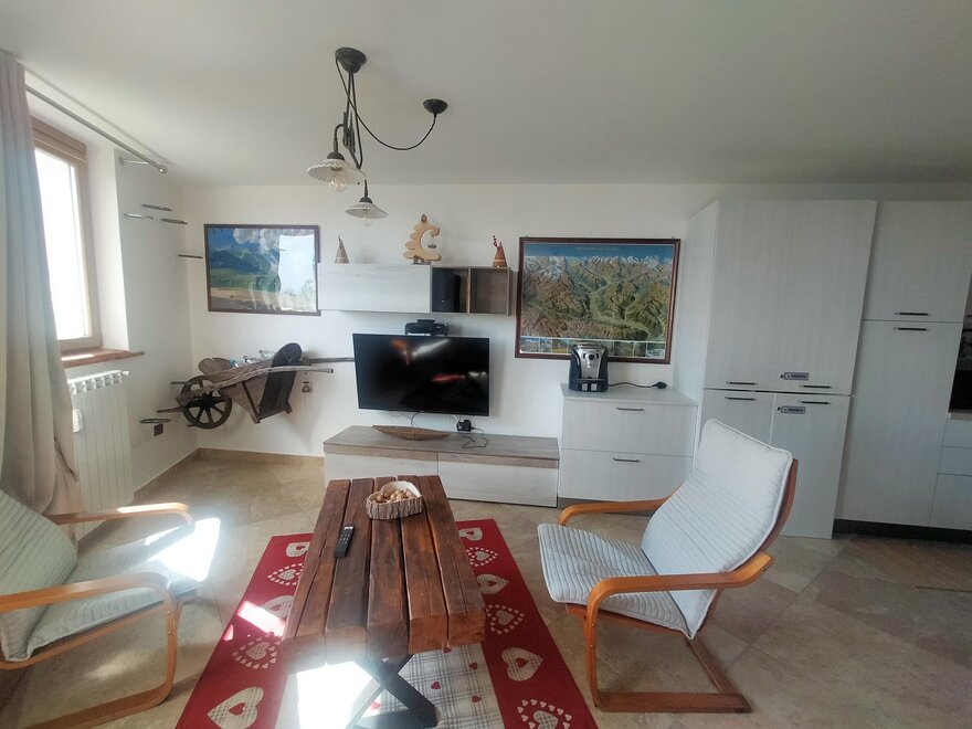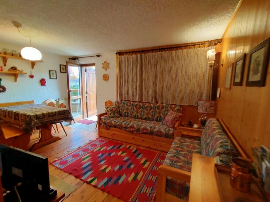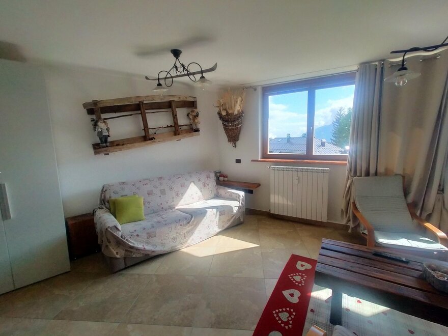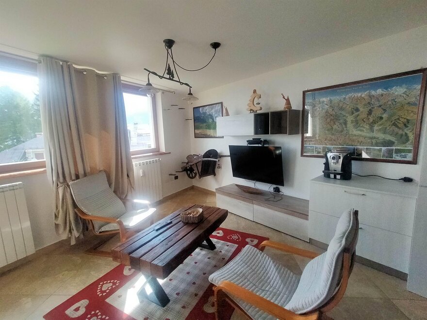 Cozy and functional three-room apartment, perfect for families or groups of friends who want to experience the mountains in total comfort. The accommodation offers a spacious living room with a sofa bed (2 single beds), a recently renovated kitchen, a bathroom, a double bedroom, and a small room with a bunk bed, ensuring space and comfort for all guests. The location is one of its strong points: just 100 meters from the slope, ideal for reaching the ski lifts on foot and enjoying the day on the snow without using the car. A perfect solution for those seeking comfort, relaxation, and immediate access to the slopes.