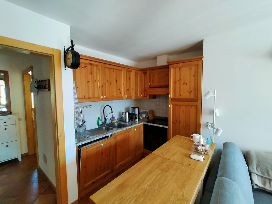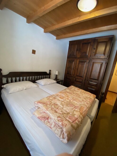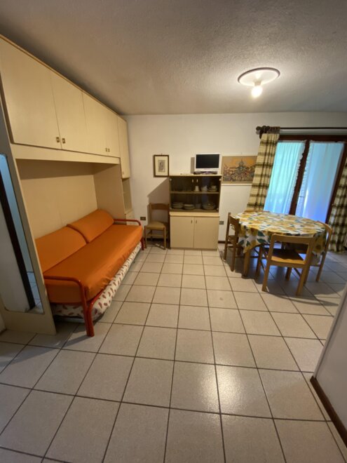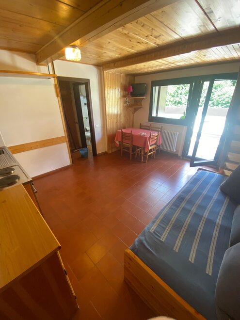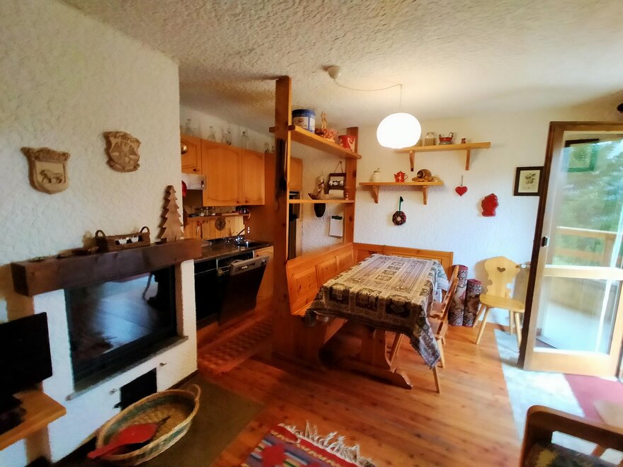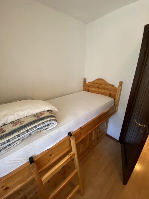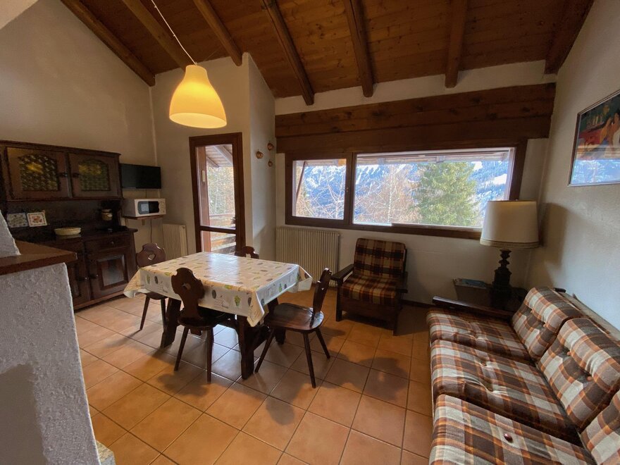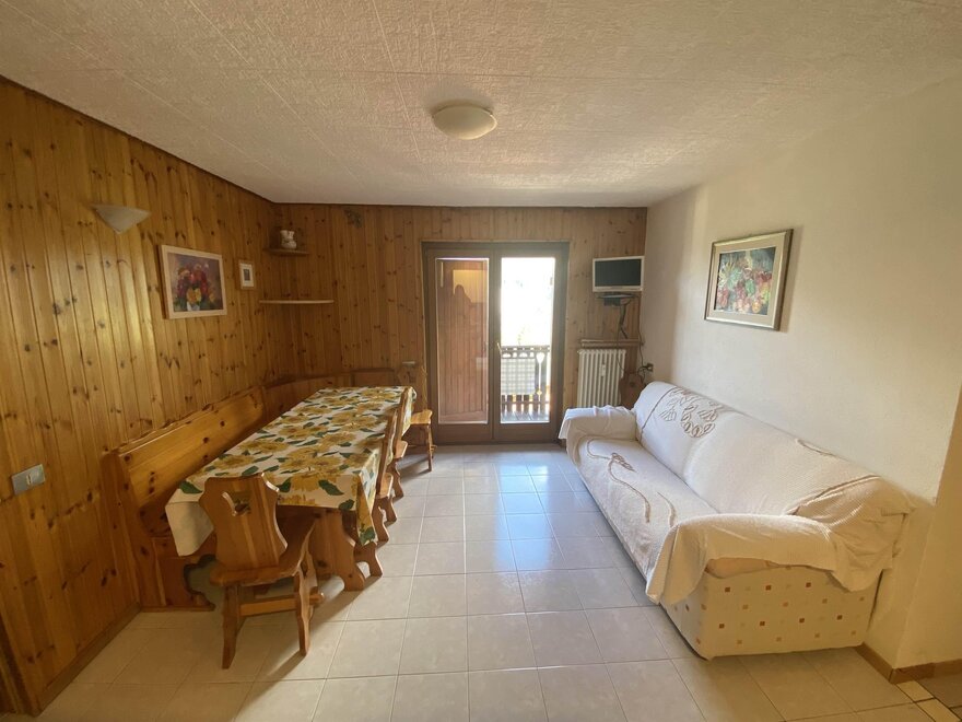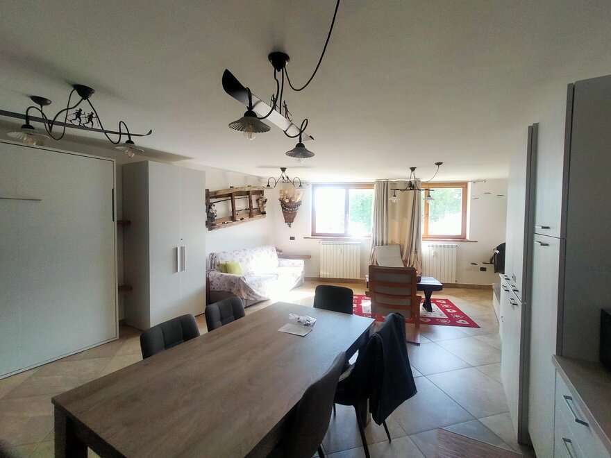 Cozy and functional three-room apartment, perfect for families or groups of friends who want to experience the mountains in total comfort. The accommodation offers a spacious living room with a sofa bed (2 single beds), a recently renovated kitchen, a bathroom, a double bedroom, and a small room with a bunk bed, ensuring space and comfort for all guests. The location is one of its strong points: just 100 meters from the slope, ideal for reaching the ski lifts on foot and enjoying the day on the snow without using the car. A perfect solution for those seeking comfort, relaxation, and immediate access to the slopes.