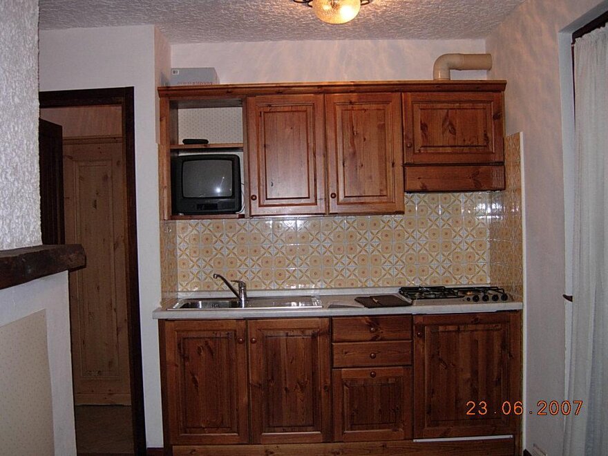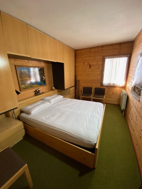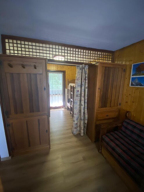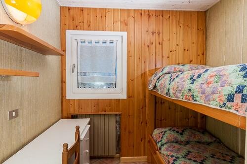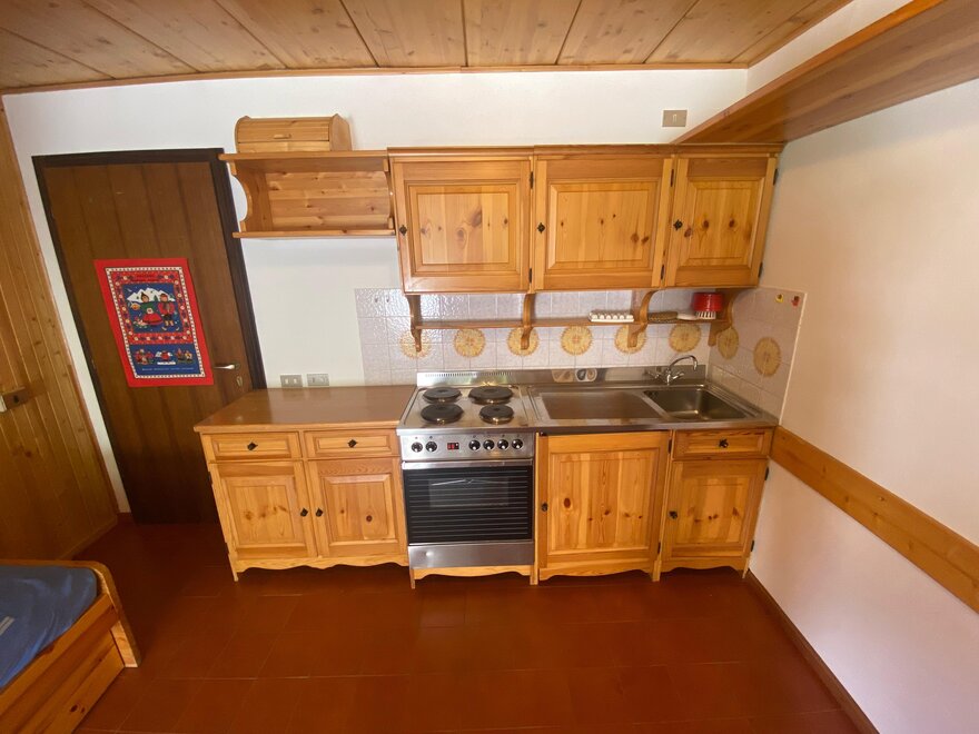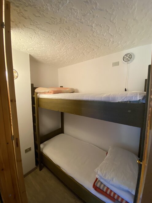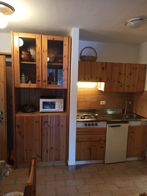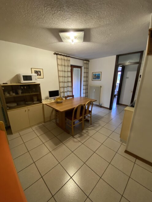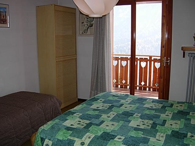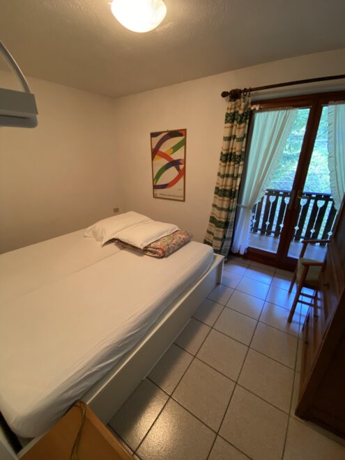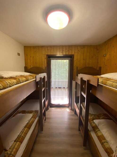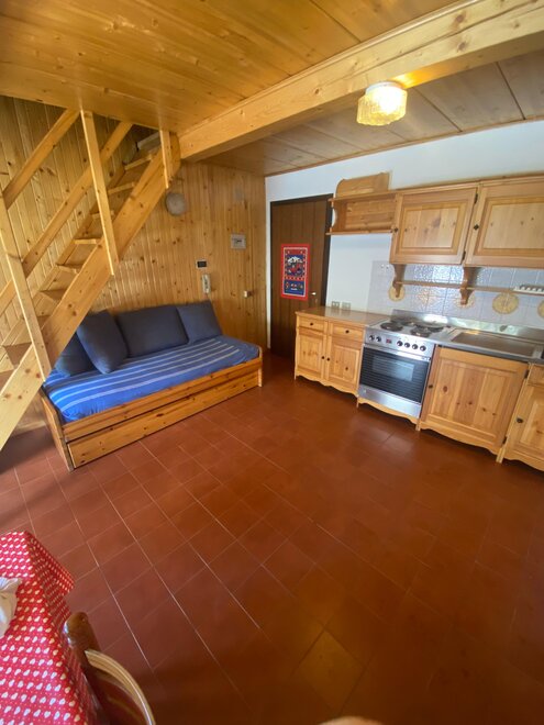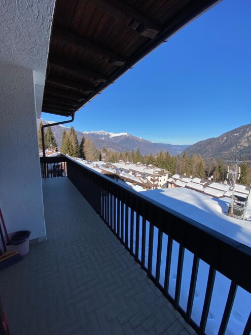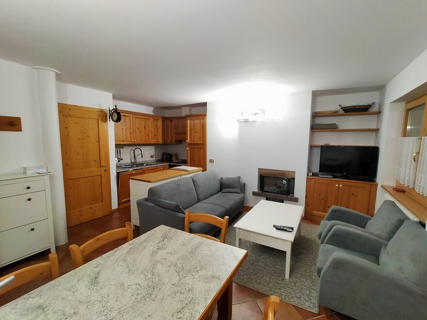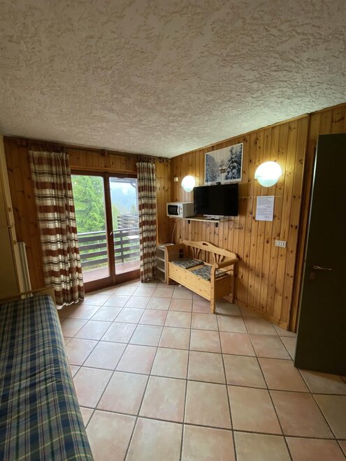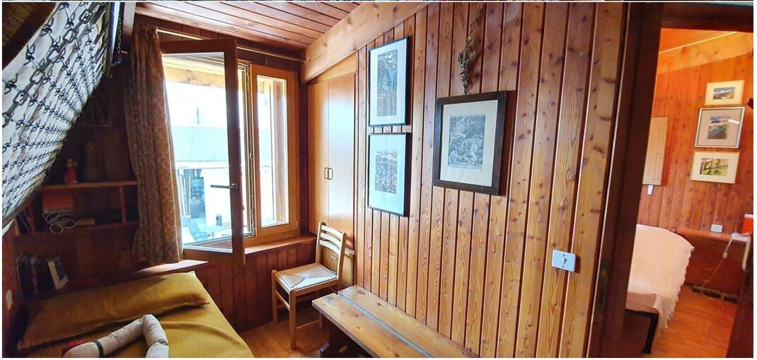 The apartment has a double bedroom and a second room with two bunk beds, perfect for accommodating children or groups of friends. The living area consists of a living room with a sofa and a kitchen equipped with gas hobs, a refrigerator, and a microwave, ideal for preparing meals independently. The accommodation is completed by two balconies, perfect for relaxing outdoors after a day on the snow. The location is particularly convenient: just a short distance from the blue run and the red run, allowing easy access to the lifts and maximizing the enjoyment of a day on the slopes.