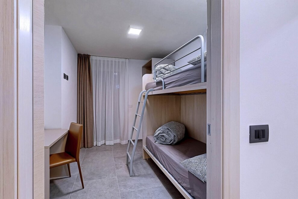 Apartment with easy access without stairs, leading to the condominium's green outdoor area. It consists of a double bedroom, a room with two bunk beds, and a two-seater sofa bed.