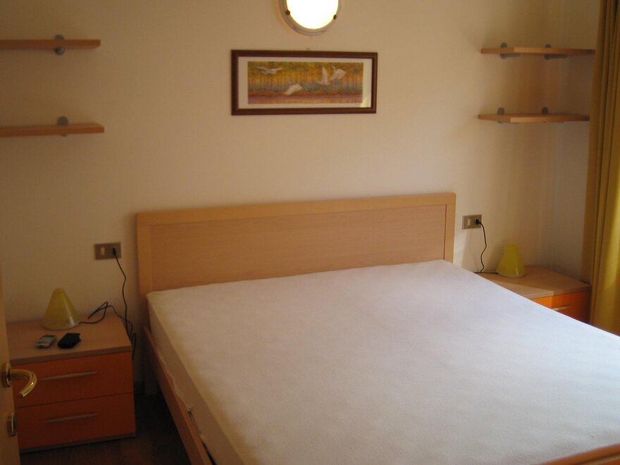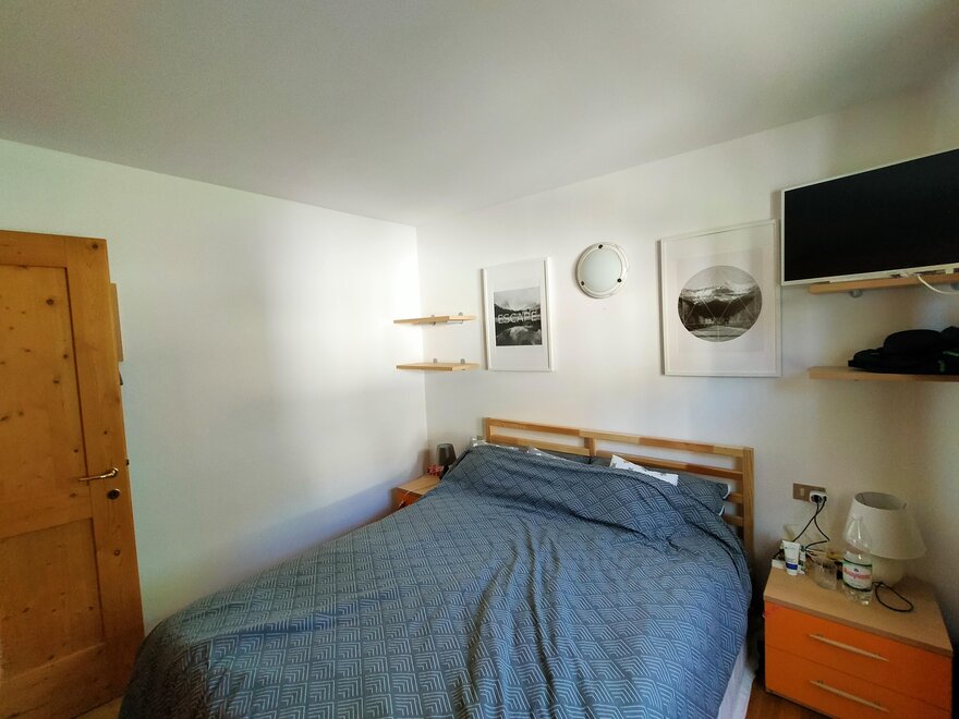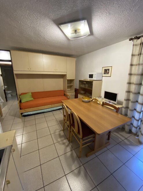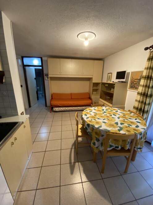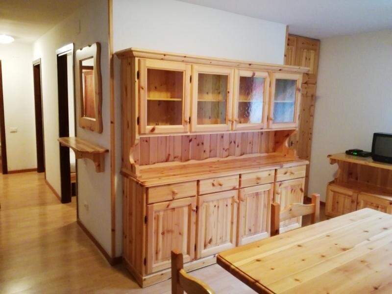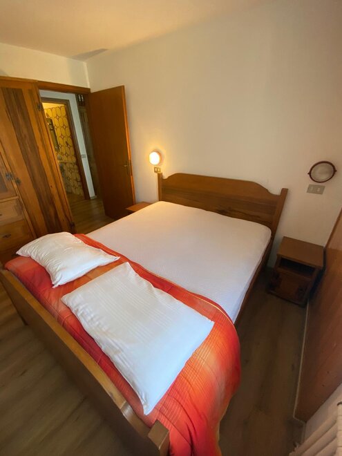 ONE-BEDROOM APARTMENT with a double bedroom, living room with balcony, single bed and a pull-out sofa bed. Separate equipped kitchen. Complete shower bathroom. Served by an elevator, very convenient access to the slope, with an exit from the ski storage directly onto the slope. Parking space included, daily tidying and bed and bathroom linen provided.