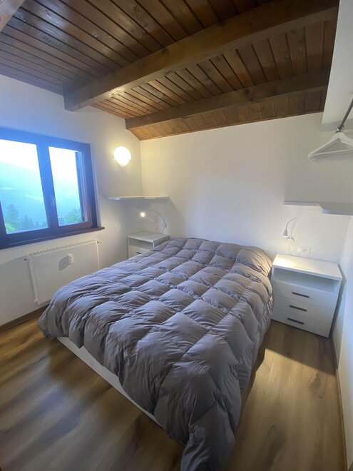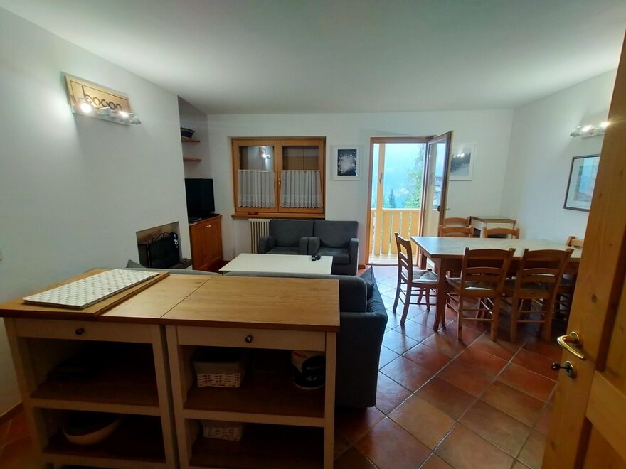 A few steps from the center of Folgarida, 150 meters from the departure of the cable car. Four-room and two-room apartment on two levels connected by a spiral staircase. Ground floor with direct access from the garage, double bedroom, double bed in the living room, bathroom with shower and bathtub. Upstairs double bedroom, bedroom with double single bed and bedroom with bunk bed. Bathroom with shower, sofa bed for 2 people and kitchenette. Access from the outdoor terrace. Energy class F