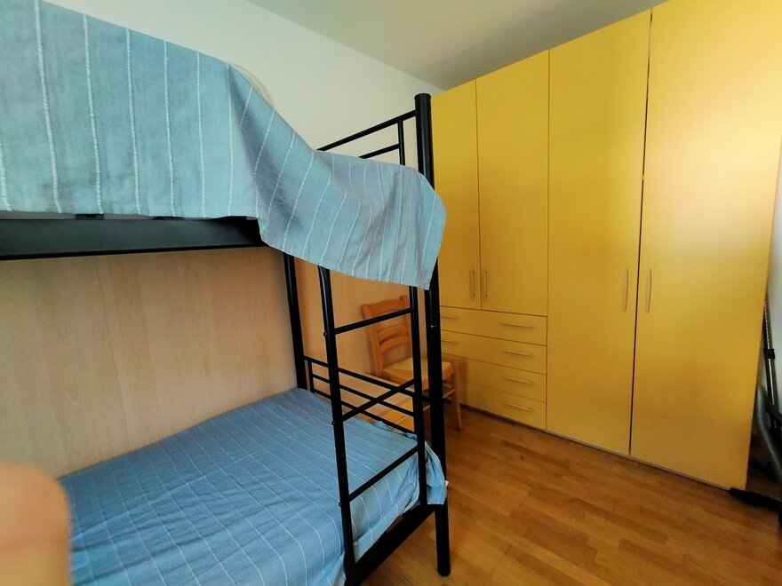 Three-room apartment with 4 sleeping places, featuring two rooms, a double bed, and a bunk bed.