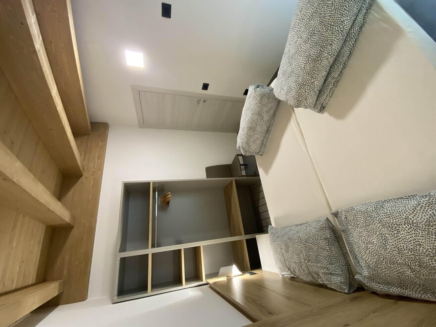 Composed of living area with sofa bed, kitchenette and bathroom with shower, mezzanine with double bed.
