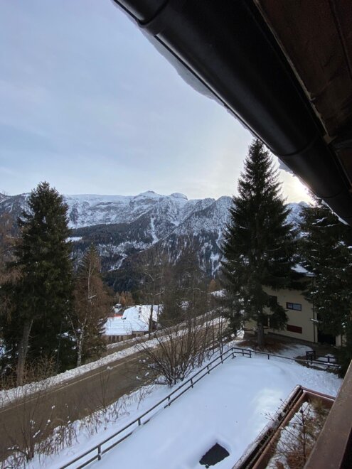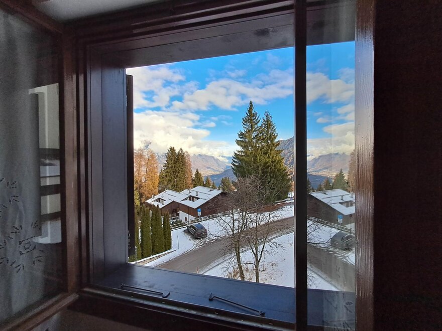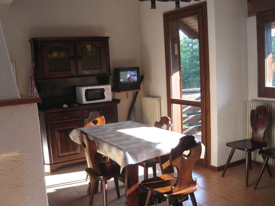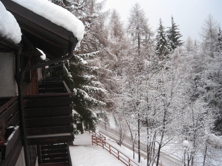 Very nice and rustic apartment with a small terrace overlooking the woods. Very close to the Belvedere slope, within walking distance.