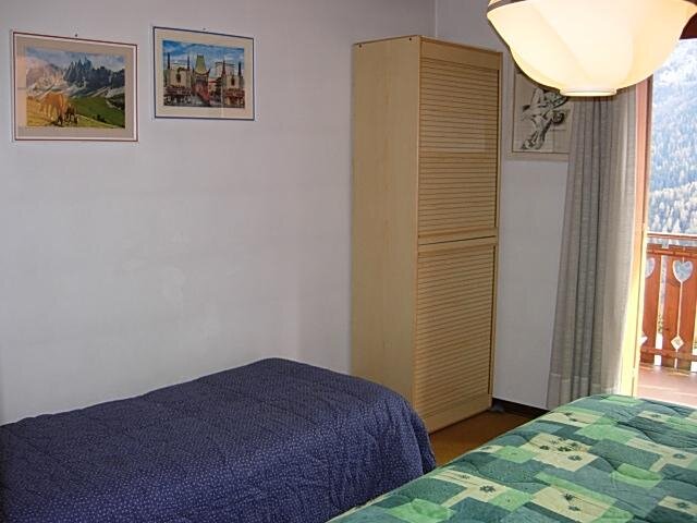 Three-room apartment very close to the ski slope, made up of living room with kitchen, double bedroom, bedroom with two single beds (joinable), bathroom and spacious independent balcony.