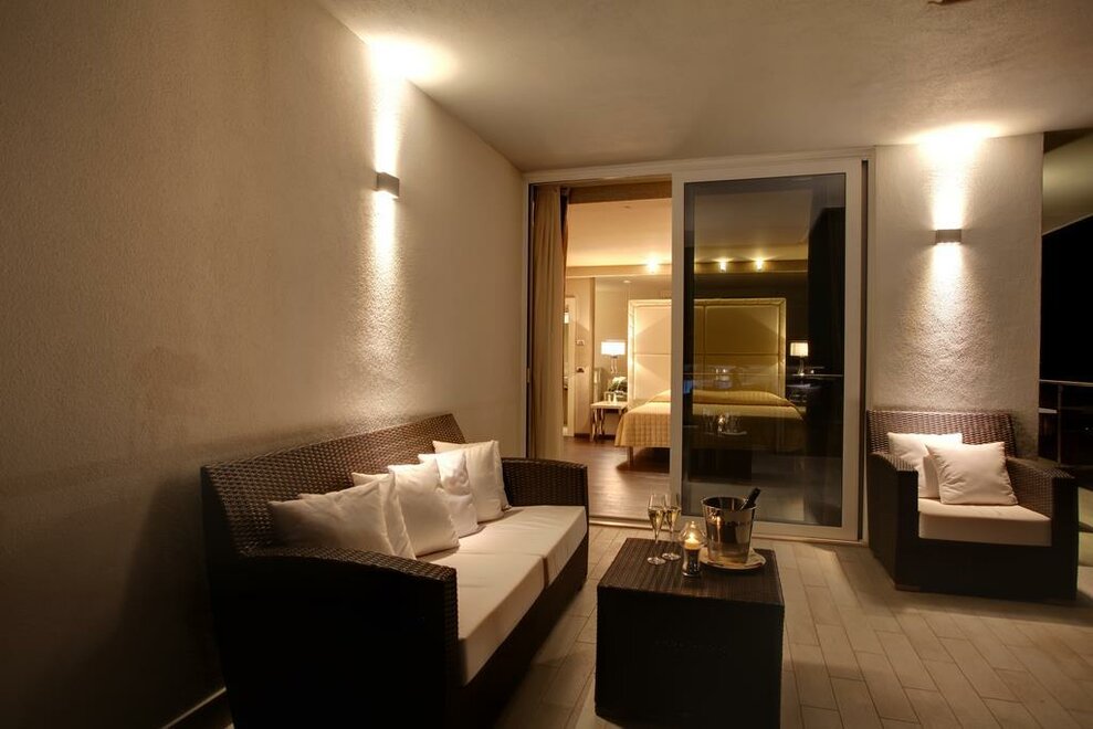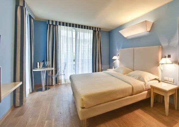 Room Elegance: •Balcony •Fresh fruits on arrival •LCD wide screen Sat TV and Sky •Telephone •Safe for laptop •Minibar •Internet Wi-Fi •Air conditioning •Bathrobe and slippers •Courtesy set •Hair dryer •Arm chair and table •Wide glass window •Wood floor