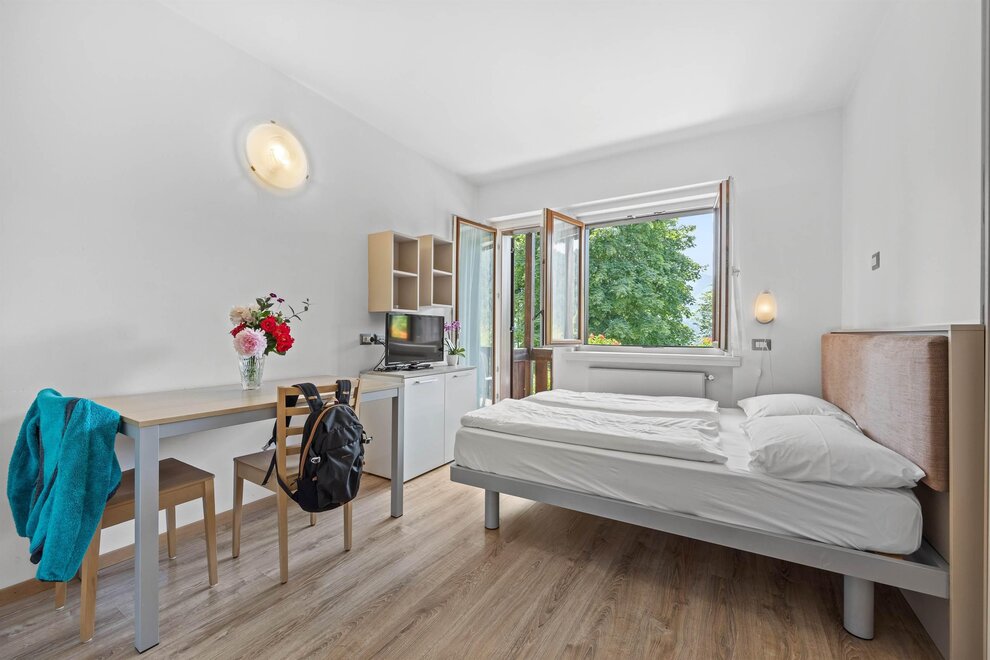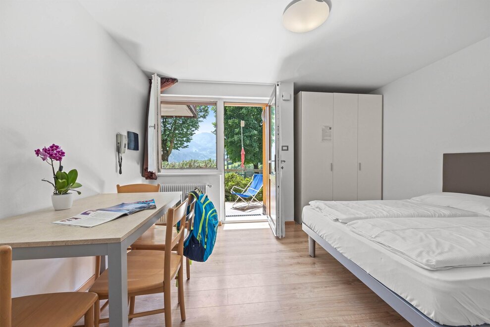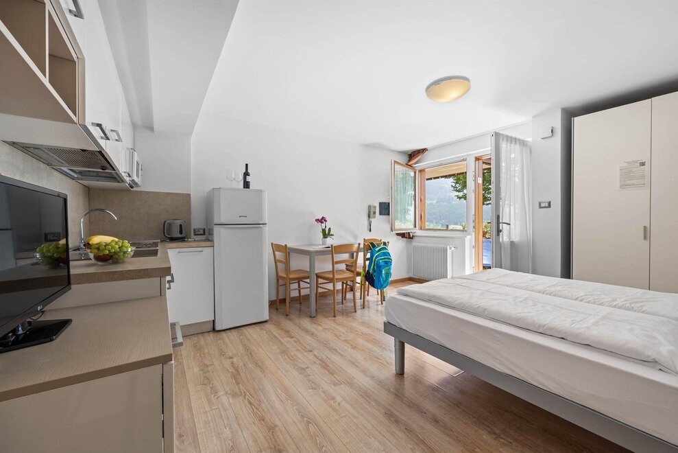 This type of apartment is completely renovated: living-dining area with double bed, kitchenette, double bedroom and bathroom with shower. Those located on the ground floor have direct access to the common garden, instead those on the floors have private balconies with valley view. All apartments have LCD TV, telephone, safe, kitchen equipped with refrigerator, pots, pans and glasses, microwave, moka, kitchen cleaning kit (detergent, sponge and dishcloth), bathroom with shower, bidet, toilet and hairdryer. Also provided are blankets, pillows and bed linen and towels with weekly change.