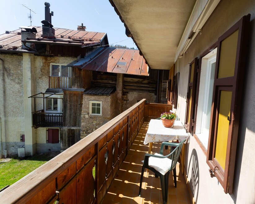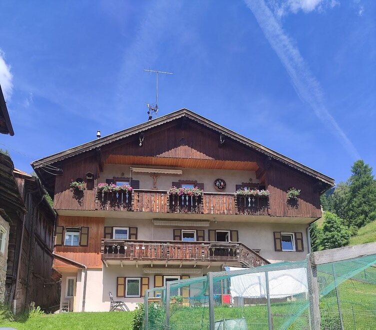 CASA LORENZ is a mountain house located in Vigo di Fassa-Sen Jan, not far from the center. The main services such as pharmacy, supermarket and bus stop are within walking distance. The "Catinaccio cableway" ski lifts are a 10-minute walk from the property. The apartment is quiet, equipped with an enjoyable balcony, with a panoramic view of the surrounding mountains. Suitable for families due to the large size and outdoor spaces. The furnishings are rustic, made of wood, the living room is typical of the Alpine areas, photos and paintings tell the story of the family of origin. The house is clearly visible from the street and has parking and ample storage for bicycles and skis. The main entrance is accessible without stairs