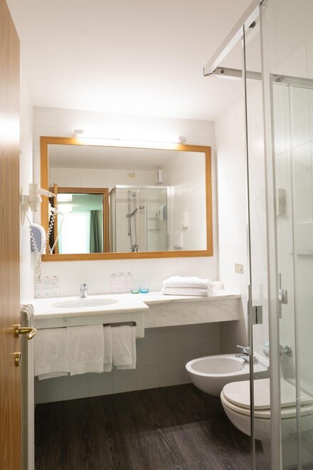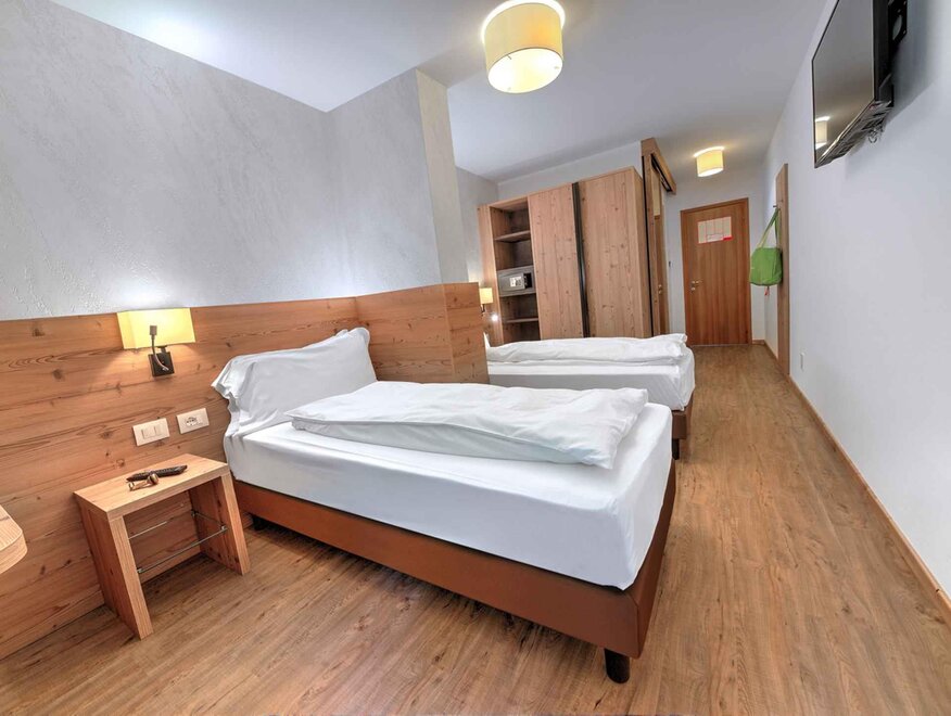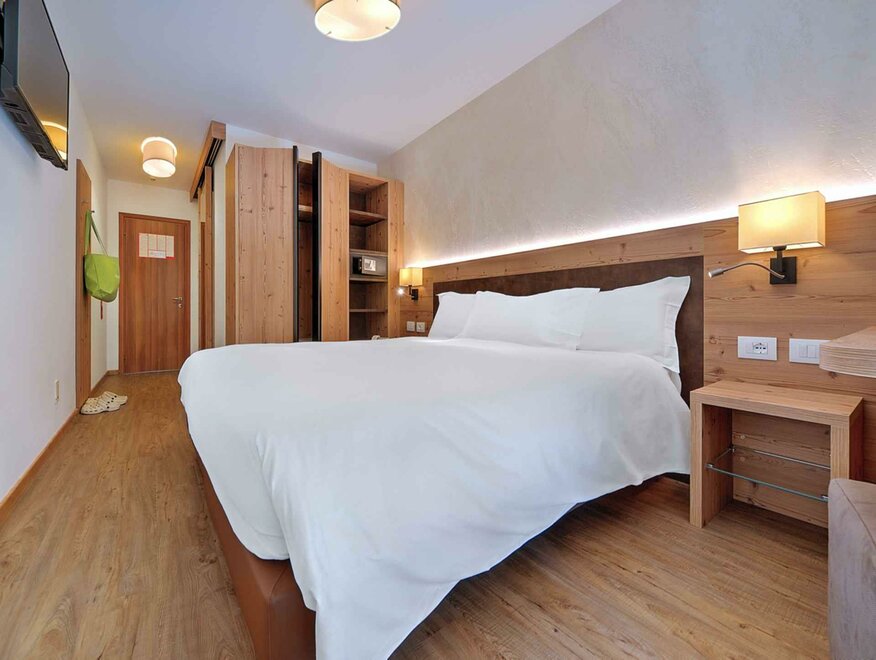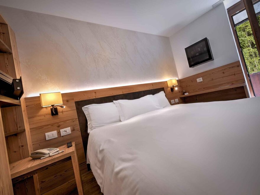 The size of these rooms ranges from 21 to 25 m². Simple, yet comfortable with all amenities. All of our standard rooms have a washroom with a shower, a balcony with a view of the mountains or the wood, LCD TV with digital terrestrial television (DTT) and satellite reception, mini-bar, telephone, safe and complimentary slippers. Amenities included: - access to the SPA KoKun (swimming pool with counter-current equipment, pool with water features, Tibetan shower, Kneipp therapy, sauna, Turkish bath and relaxation area); - Wi-Fi; - slippers and bathrobe in guests’ room; - the Dimaro Folgarida Vacanze Card (with discounts on local services or free activities);