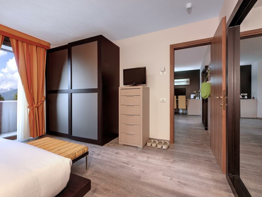 Our Superior rooms are brand new, furnished in a modern, original style! The size of our rooms is 25 m² and they offer guests a wide range of amenities. A unique characteristic of these rooms is that they have been furnished with 3 different themes: - Wellness - Art - Nature All of our rooms have a balcony and our Superior rooms have a balcony with a view of the forest, a washroom with a shower (showers with chromotherapy in our Wellness rooms) and hairdryer, telephone, Satellite TV, safe, bathrobe and slippers at guests’ arrival, mini-bar. Amenities included: - access to the SPA KoKun (swimming pool with counter-current equipment, pool with water features, Tibetan shower, Kneipp therapy, sauna, Turkish bath and relaxation area); - Wi-Fi; - Dimaro Folgarida Vacanze Card (with discounts on local services or free activities)