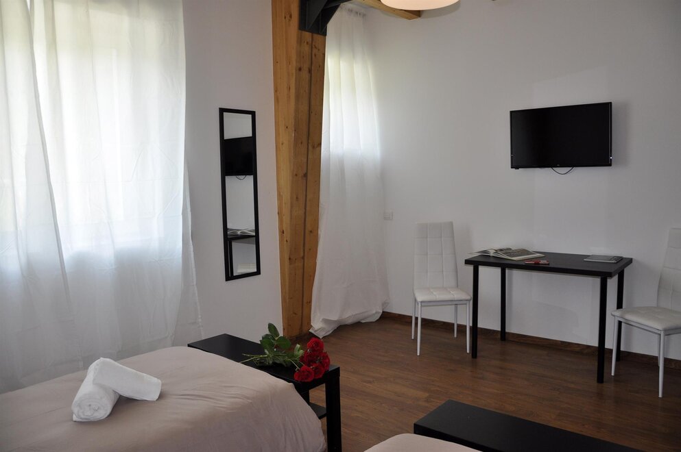 About 400 meters from the train station and the "Borgo Centro" bus stop.