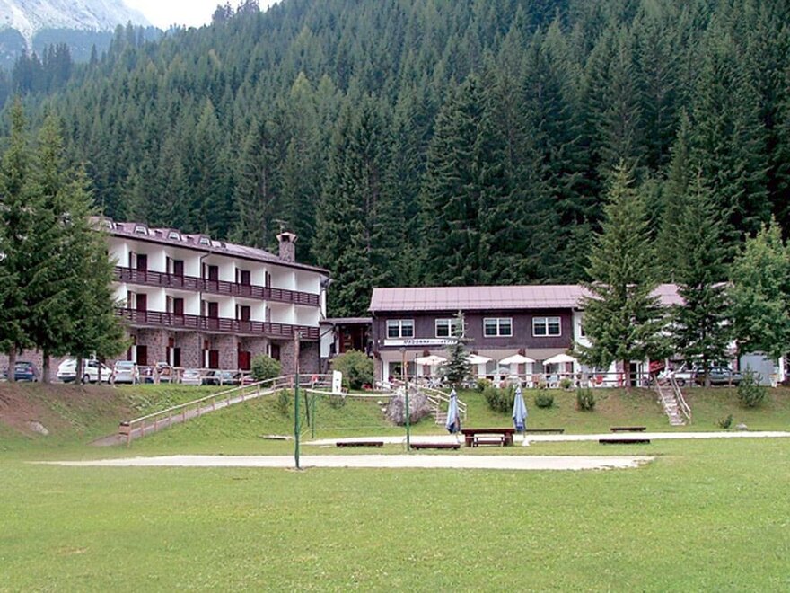 In the heart of the Dolomites, surrounded by breathtaking scenery, the Albergo Madonna delle Vette is located in Alba di Canazei, in Val di Fassa, just 2 kilometers from the center of Canazei. It is situated in an optimal location: an ideal starting point for both summer hikes and walks as well as for reaching the nearby slopes. Very close to the Ciampac ski area (200 meters), a large sunlit basin directly connected to the Buffaure Ski Area in Pozza, ideal for families, thanks to the easier slopes and the playground located up high, but also known especially for the black return slope, one of the steepest and most challenging in the valley. Just 8 kilometers from the Marmolada, and also thanks to the free ski bus service (stop 50 meters away), it is easy to reach the Belvedere - Col Rodella Ski Area and the SellaRonda, the famous circuit of the Four Passes around the Sella massif, which connects, on skis, the main Dolomitic valleys. Skiing and snowboarding, ice skating at the nearby Ice Stadium, snowshoe walks, and ski mountaineering excursions to make your vacation unique, fun, active, and unforgettable. In summer, you can embark on relaxing and easy valley floor walks or more challenging trails on via ferratas or alpine routes. The Albergo Madonna delle Vette is equipped with comfortable rooms, all with private facilities, telephone, TV-SAT, and SKY; also an elevator to the floors, a spacious dining room, TV room, bar lounge, large lounge for enjoying pleasant and relaxing moments in company, children's game room, room with a pool table, ping-pong table, and foosball, ski storage, uncovered private parking, outdoor playground for the little ones, and volleyball and basketball courts for older guests. Free WI-FI service in common areas and a beautiful church inside the hotel. The hotel is completely barrier-free.