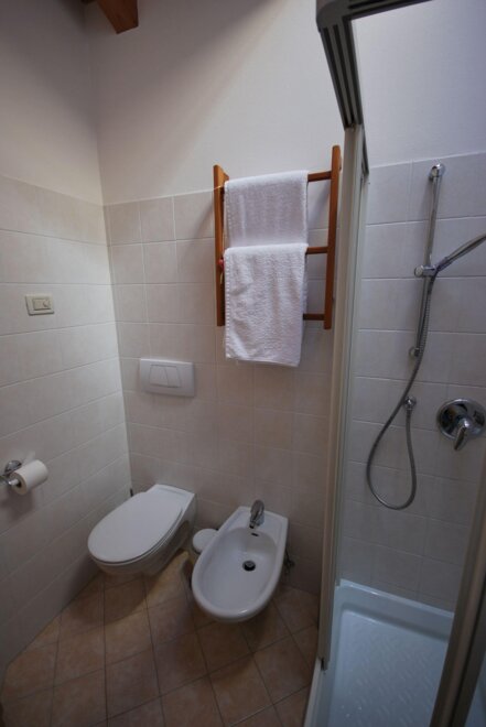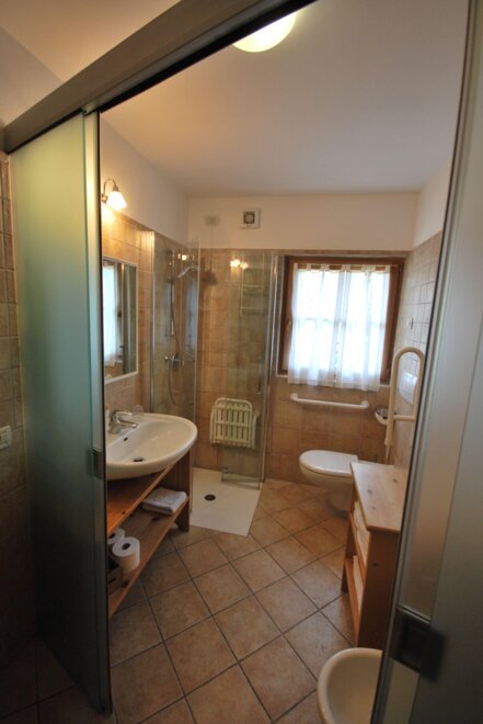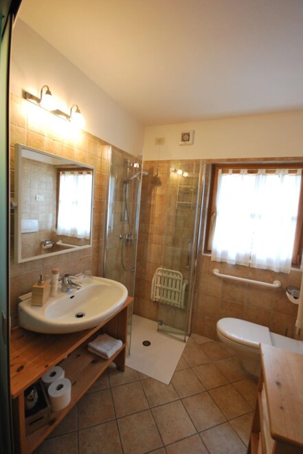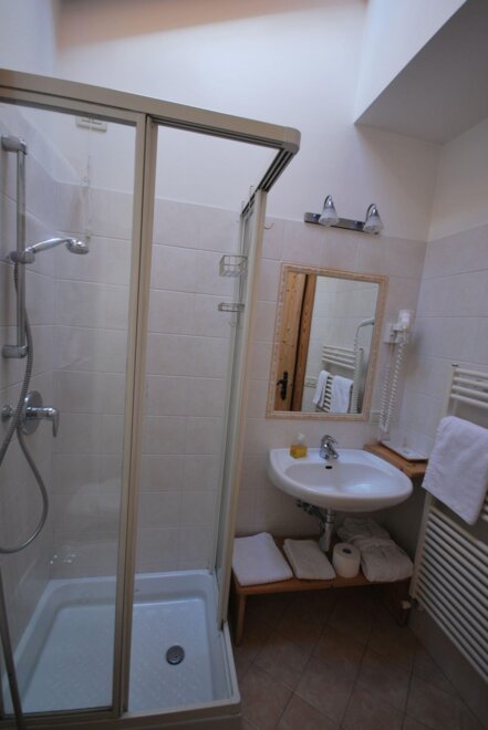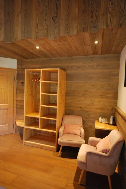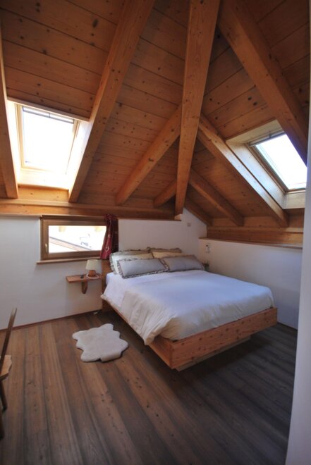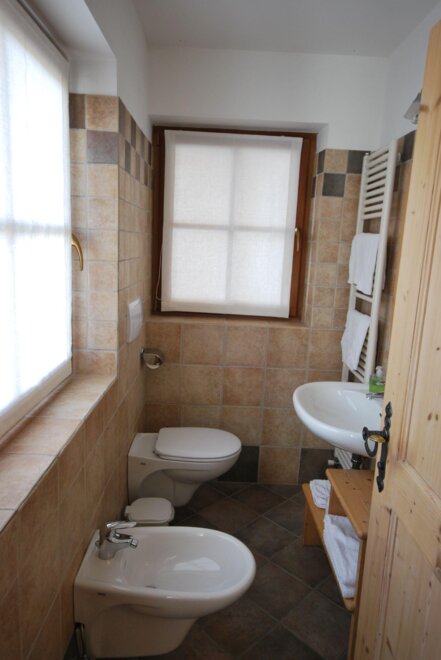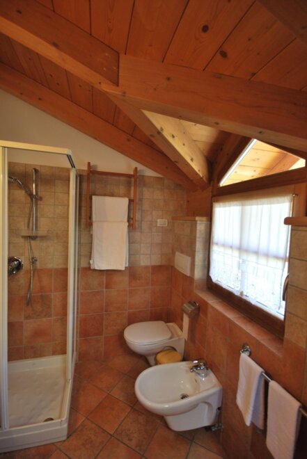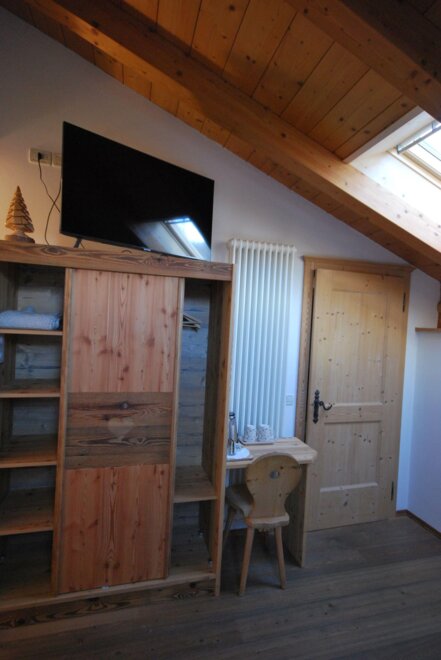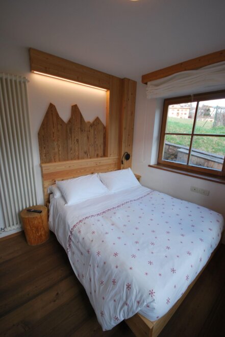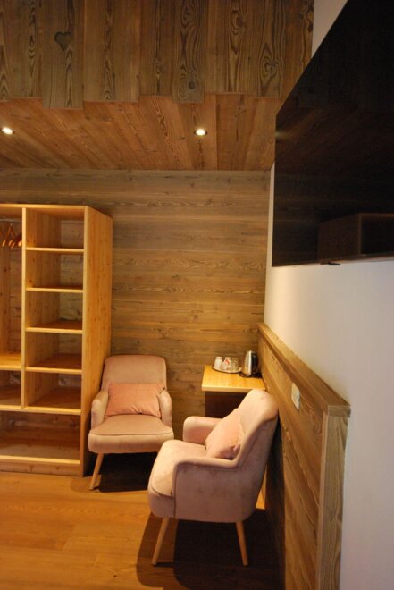 The floor in our rooms is made of natural larch wood from the Fiemme Valley with underfloor heating, for better heat distribution over the entire surface. Each room is self-heating, each guest can adjust the room temperature quickly and easily. The room is equipped with every comfort. On the balcony you will find a comfortable drying rack and deck chairs to relax and enjoy the silence and nature.
