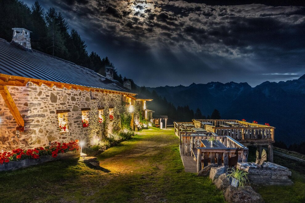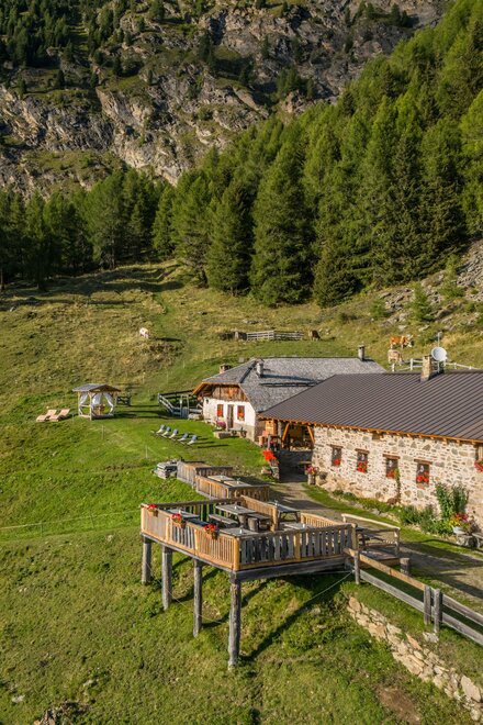 On warm days you can sit on the panoramic terrace with a splendid view of the surrounding mountains or, for a special evening, you can choose a romantic dinner by candlelight in the old mountain dairy.