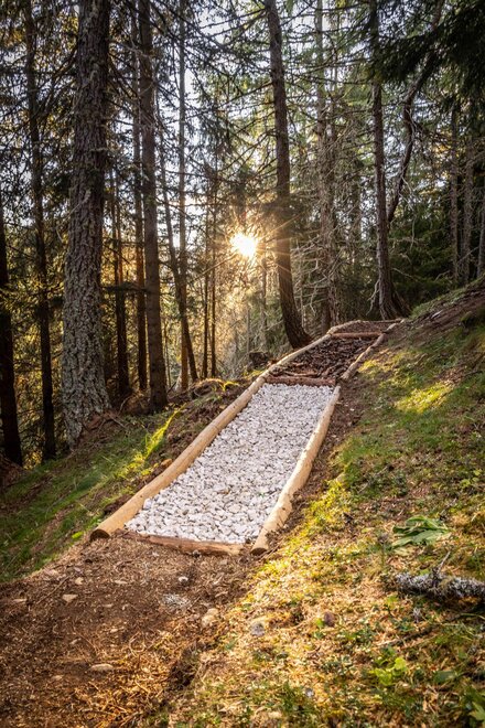 Malga Campo Nestalp is a farmhouse inn located in Val di Pejo, at 1,979 metres above sea level. Surrounded by the living nature of the Stelvio National Park, the mountain dairy is surrounded by meadows, woods, mountains and trails, which offer interesting stimuli for excursions on foot or by mountain bike.