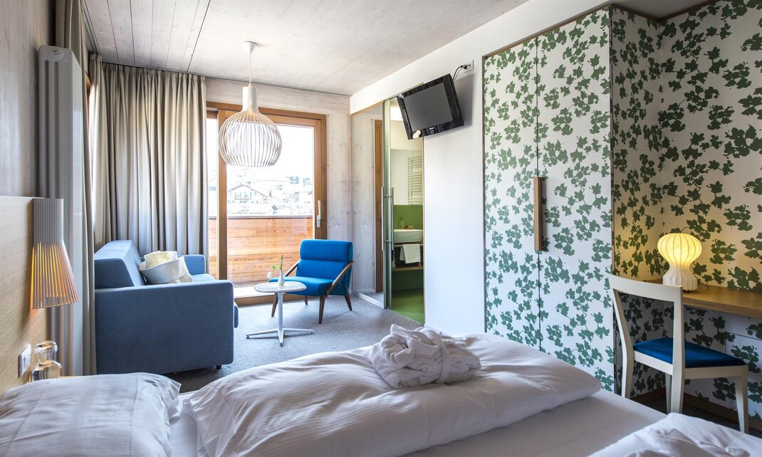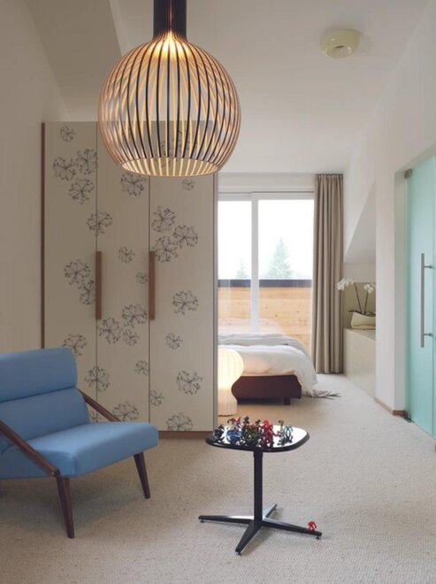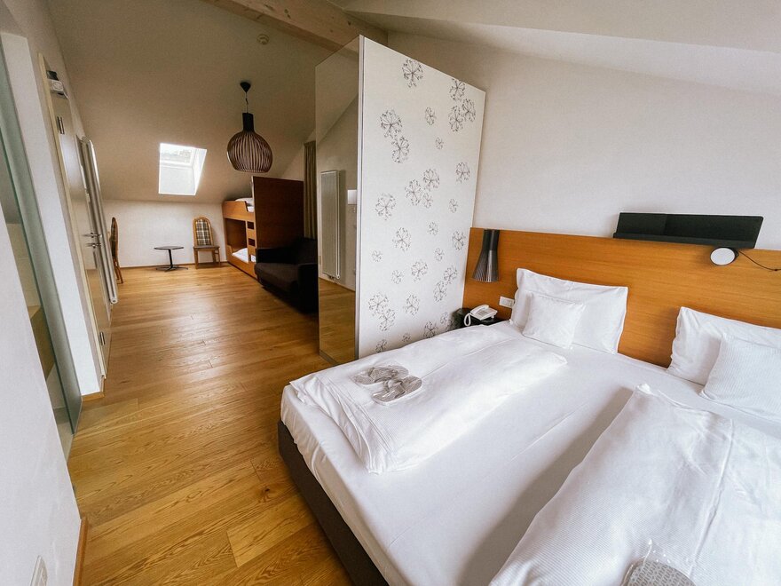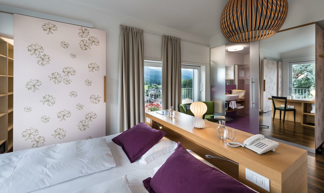 The superior room Viola classic and the communicating room Tulip eco comfort are a nice idea for a family or a group of friends. This way, everyone can enjoy maximum privacy. Two atmospheres, two colours and two different materials to visit each other whenever you want.