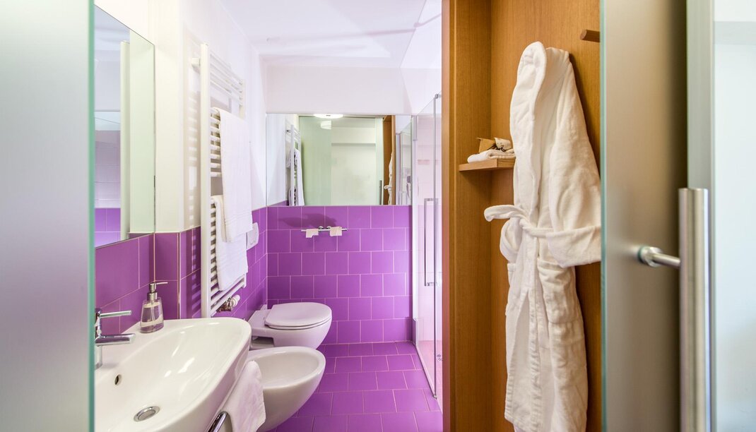 Our Viola Superior rooms are coloured, bright with a modern and Northern design. Available: hairdryer and ecological soap. Telephone, TV-SAT, safe and WI-FI. Opportunity of baby cot and sofa bed or small bed.