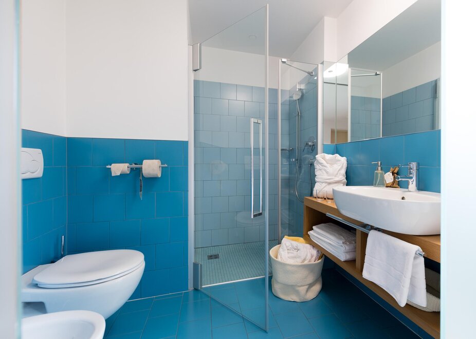 The room is minimalist. The cheerful colours and essential furnishings are relaxing. Almost like a small cell, the environment in its simplicity has several positive effects on the body and mind: lowering the heart rate when stressed and tired, improving the quality of sleep, relaxation and psychophysical recovery.