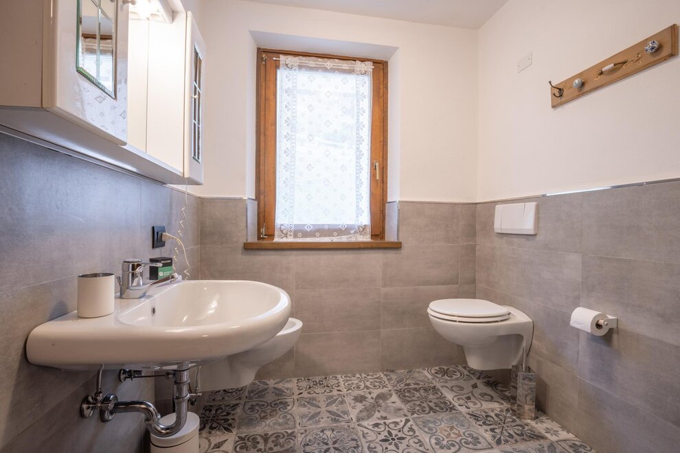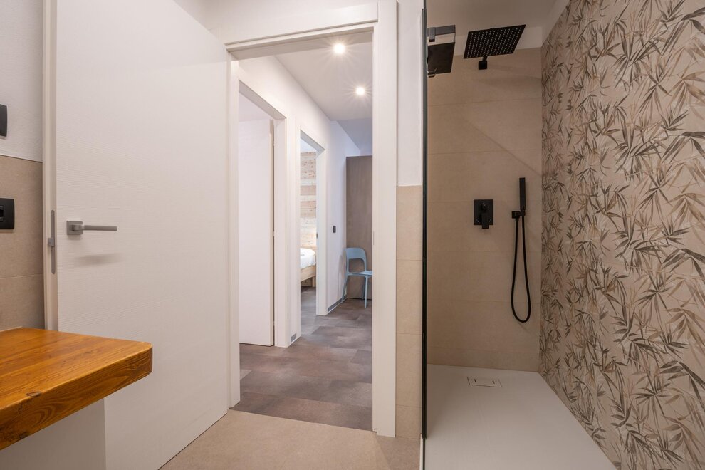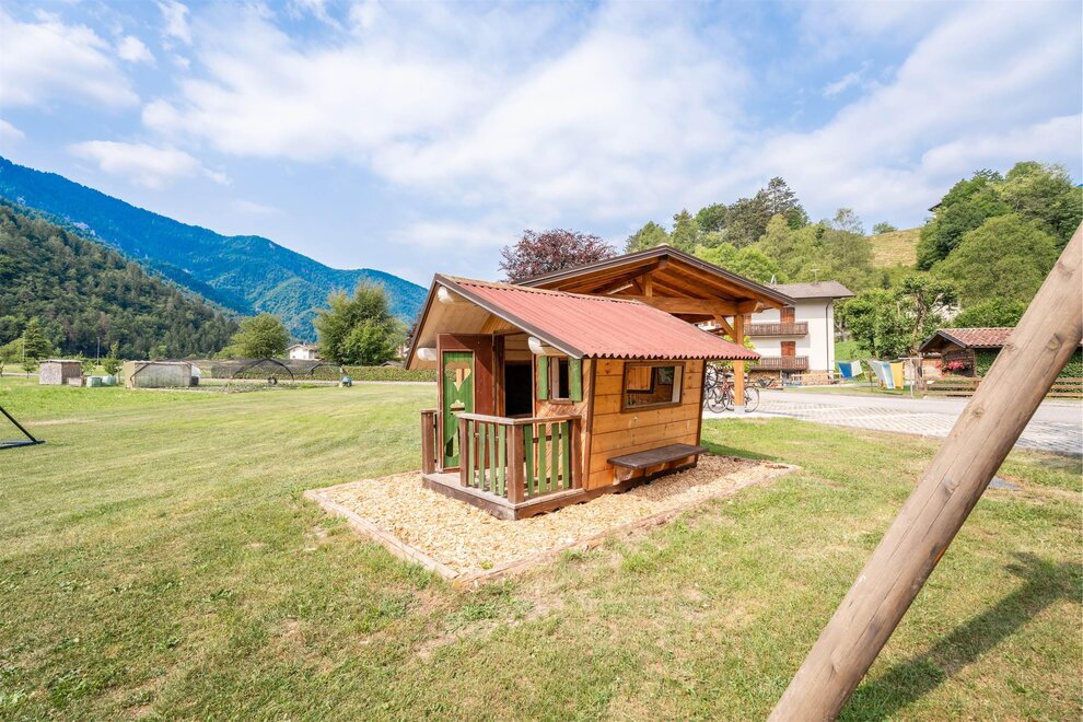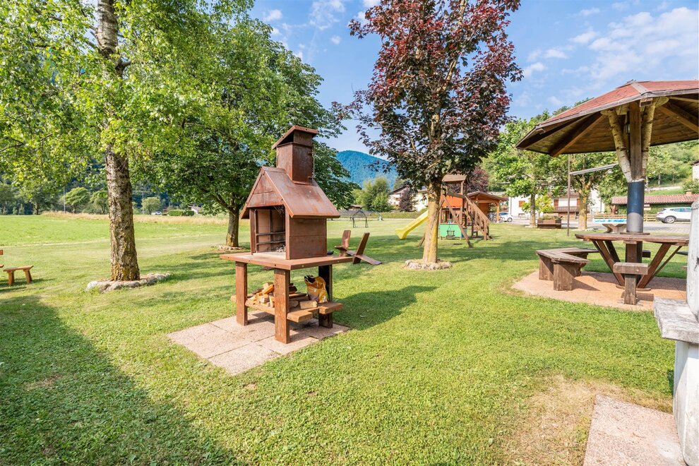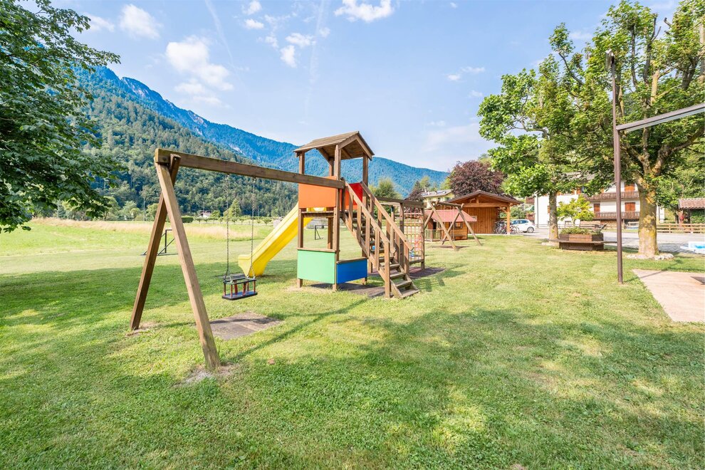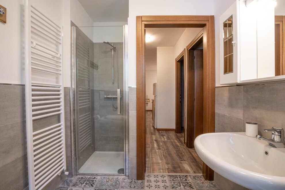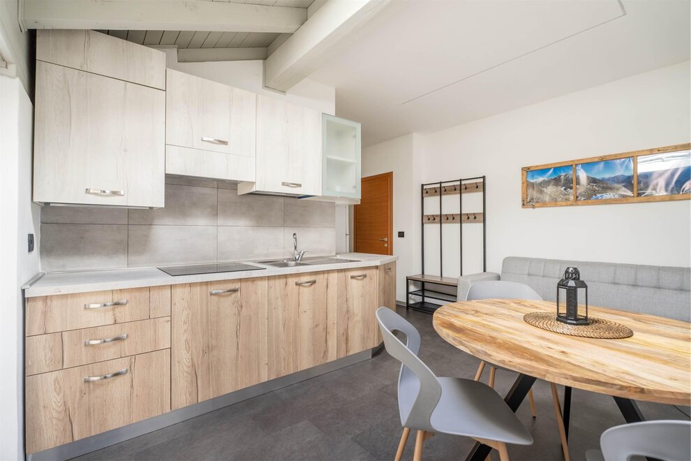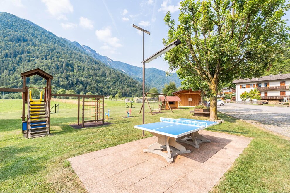 It includes a living room with a fully-equipped kitchen, a double bedroom, a bedroom with two single beds and a double sofa bed in the living area, accommodating up to 6 guests. The ground floor apartment has a patio for private use, while apartments on the first and second floors have a balcony with a small table, to enjoy the beautiful panorama over the Ledro valley mountains.