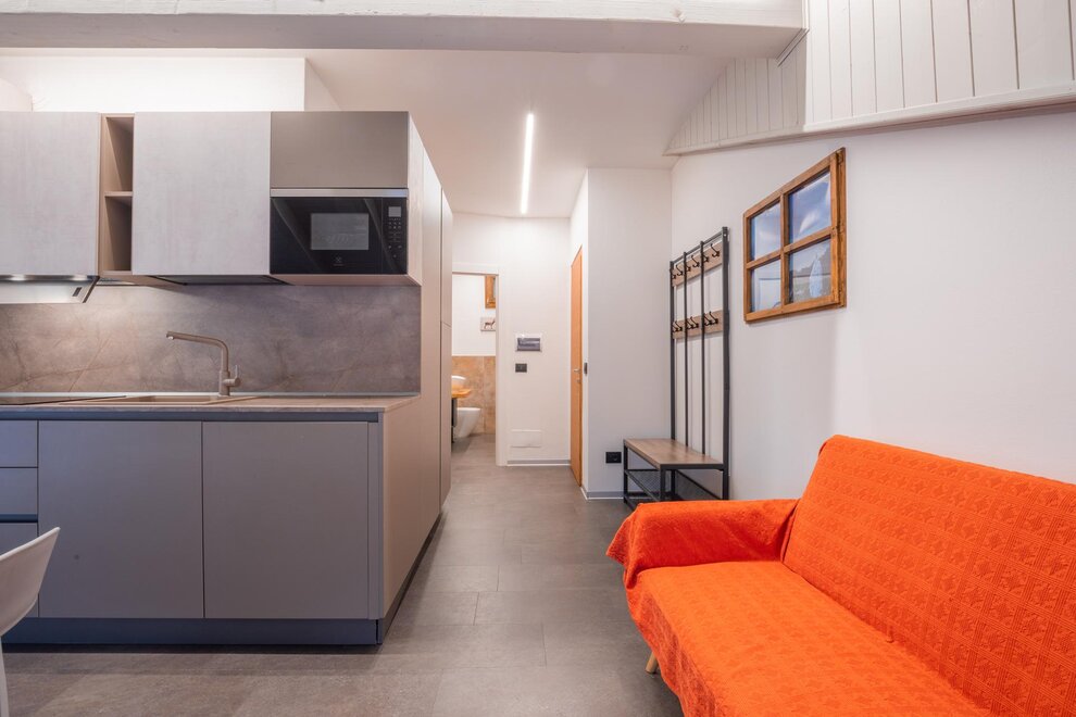 It can accommodate up to 3 people and consists of a double bedroom with TV; a living room with sofa bed and satellite TV; a full kitchen equipped with induction hob, microwave, dishwasher, refrigerator with freezer, Melitta coffee maker, kettle and WiFi connection; and a bathroom with large walk-in shower, bidet and hairdryer.Room/apartment features