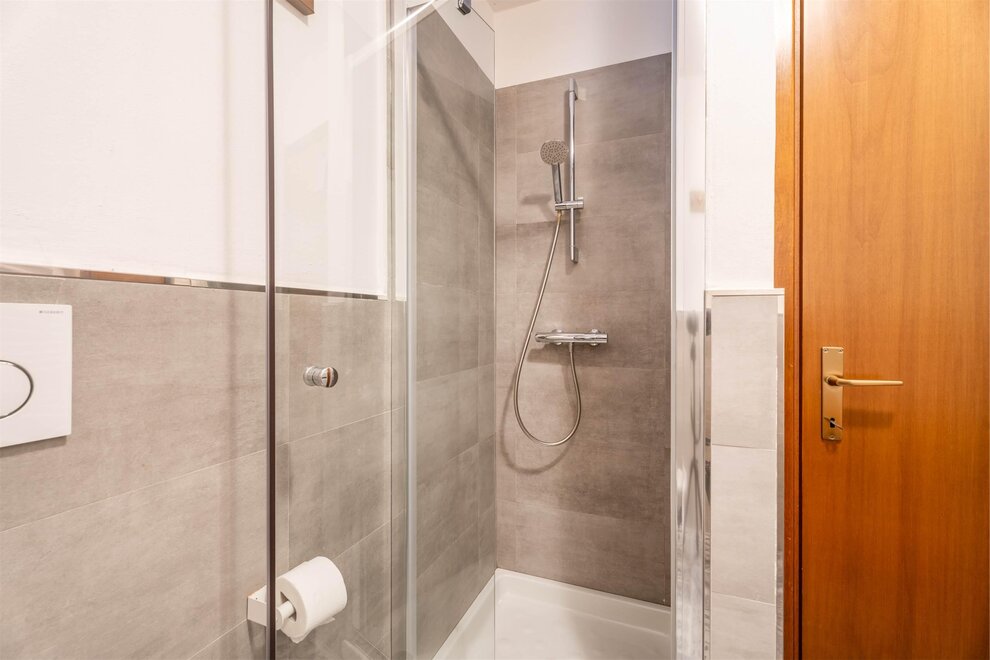 The living area features a TV, and kitchen is fully equipped with induction hob, microwave, dishwasher, fridge-freezer, Melitta coffee mashine, kettle and WiFi. The apartment also includes a double bedroom with a TV, a sofa bed in the living room, and a modern bathroom with a spacious walk-in shower, bidet and hairdryer. The private terrace, furnished with a table and chairs, provides the perfect spot for breakfast, an aperitivo or outdoor work.Bathroom facilities