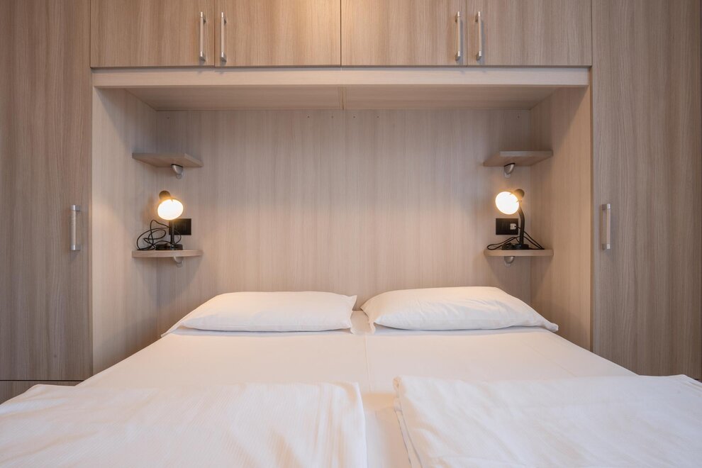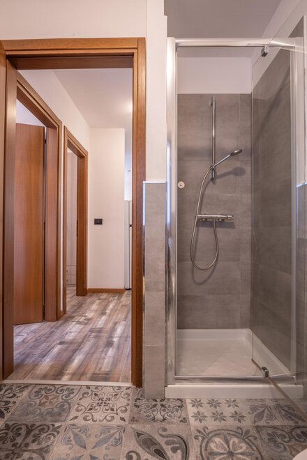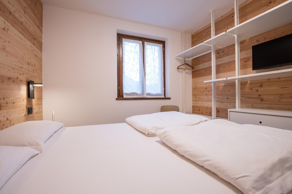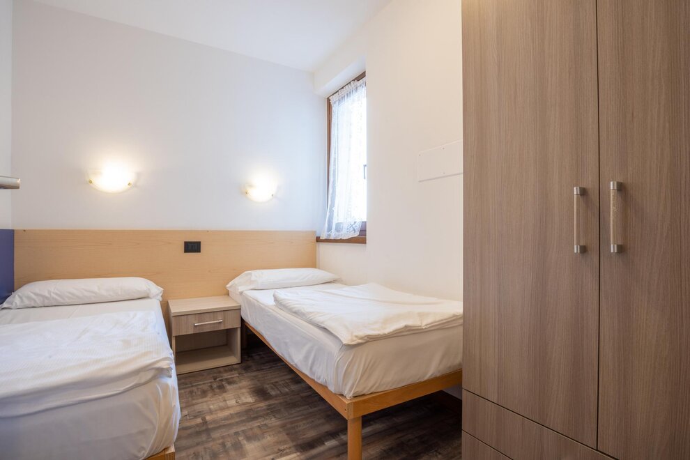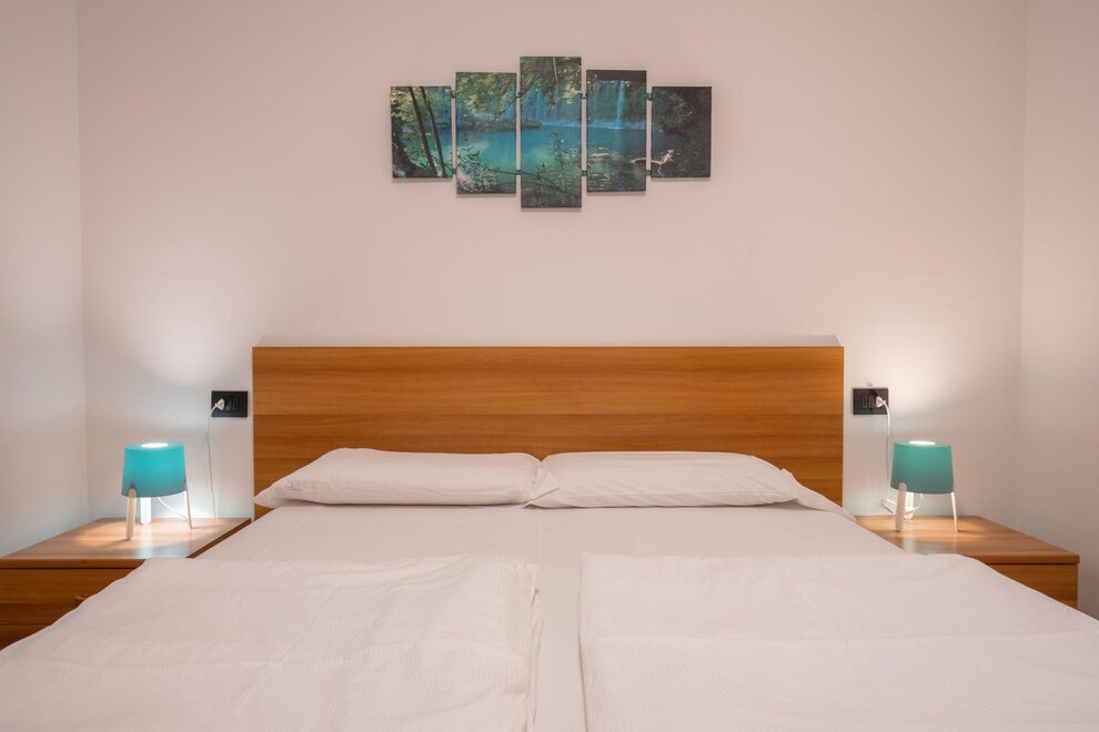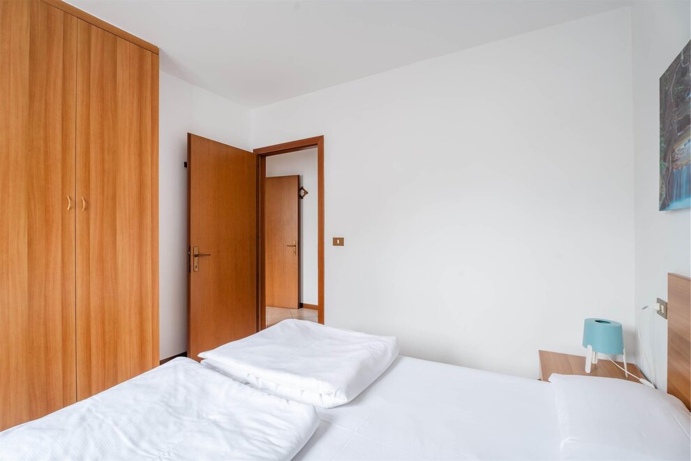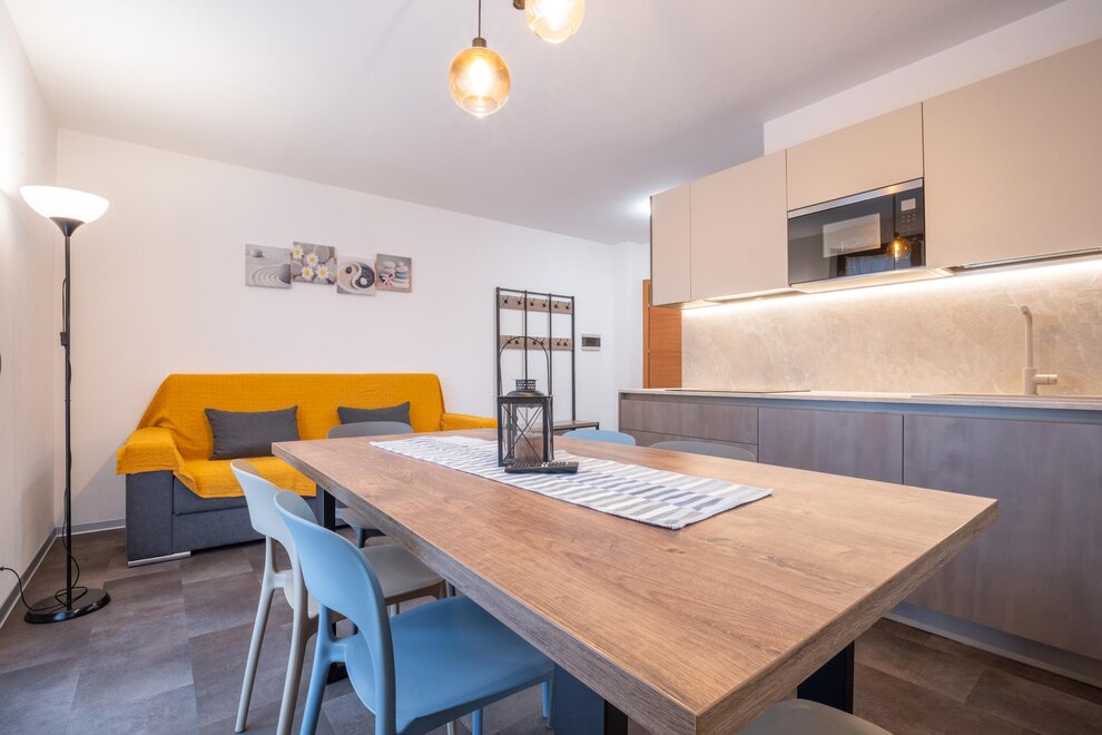 The perfect apartment for 4 or 5 people, located on the ground floor of our Residence. It includes a double bedroom, a bedroom with 2 single beds and, in case of a 5th guest, a single sofa bed in the living room. The heart of the apartment is the living room with a fully equipped kitchen, dining table and television. It is perfect for a family holiday, thanks to the garden with table and chairs.
