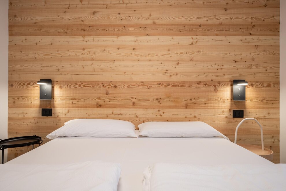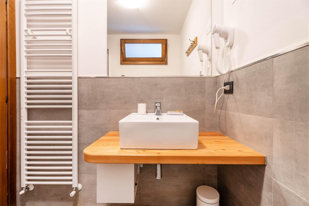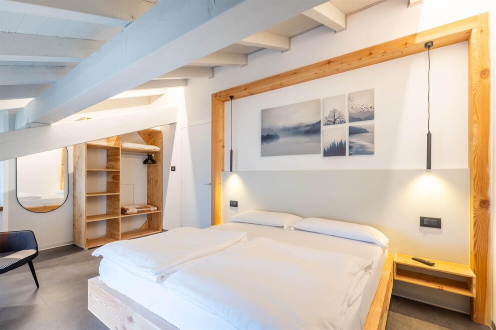 With a double bedroom, a bedroom with 2 single beds, and a single sofa bed in the living room, the Superior apartment is an ideal solution for up to 5 guests. The living area is divided between the living room and kitchen, complete with induction hob, microwave, dishwasher and fridge. The real showpiece is the large balcony with table and chairs, to admire the beauty of the Ledro Valley.