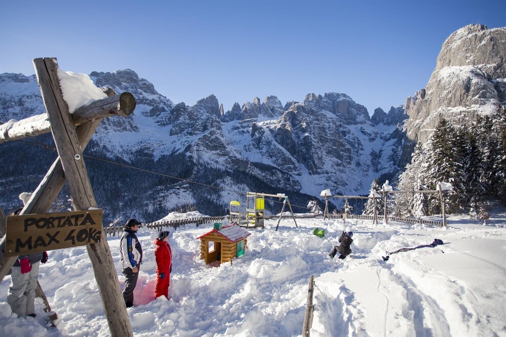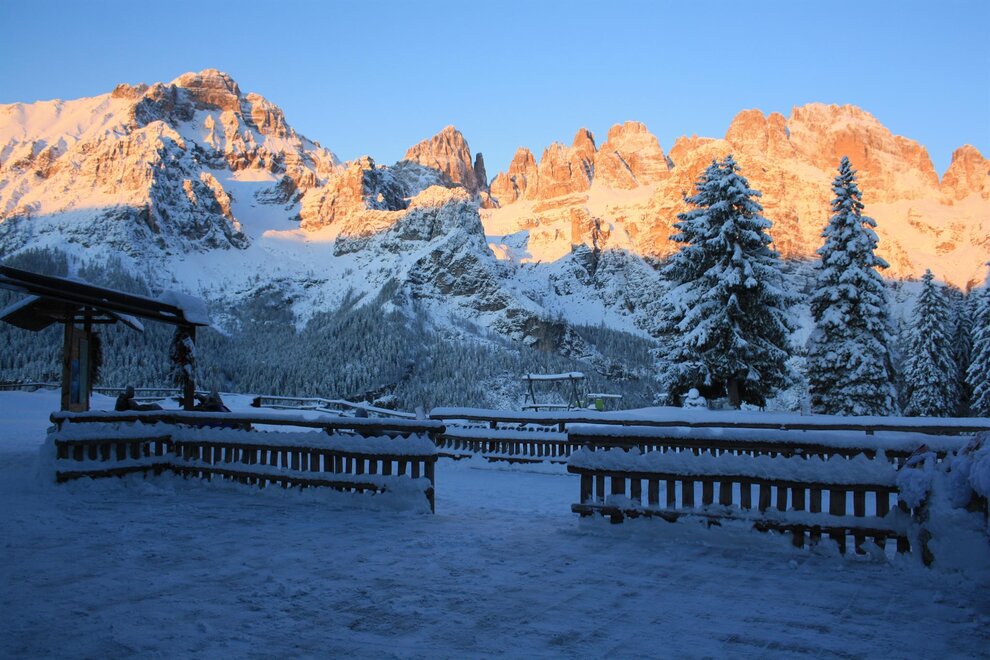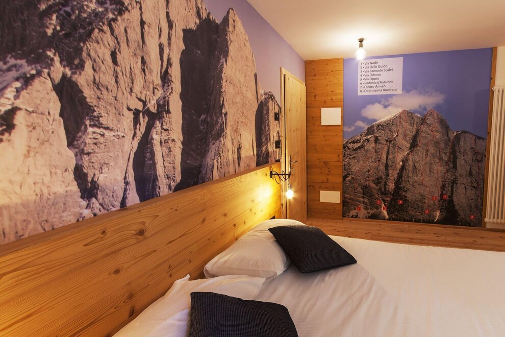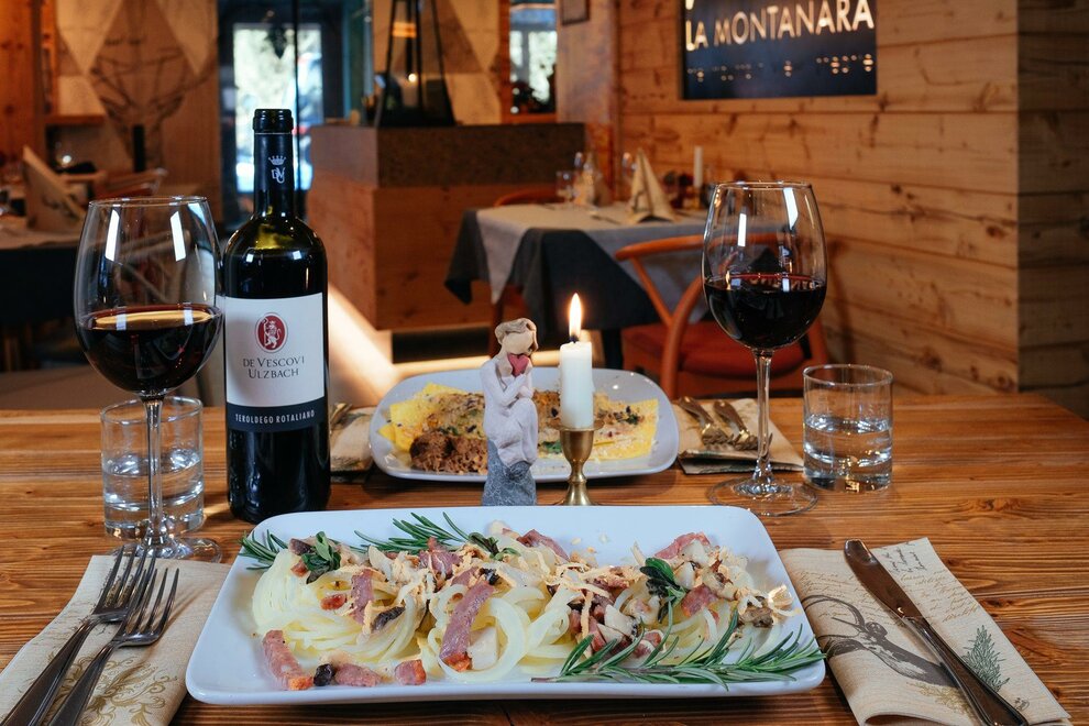 Below the pale blue waters of Lake Molveno, above the Brenta Dolomites: the views from the Rifugio La Montanara have something for everyone. From this scenic position you can seek out the slender profile of the Campanile Basso, which is usually hard to see, hidden among more commanding peaks, but which can be seen perfectly well from here. Run for over forty years by the Sartori family, the refuge is a favourite with children, too, (they can play in safety on the meadow) and with lovers of Trentino cuisine. Open Winter: open on weekends, starting from December 8th, during Christmas holidays and Easter. Spring: open on April 25th and on the following weekends. Summer: from late May to the first sunday in October the mountain hut is open every day Before leaving for your hike, always contact the manager to verify the actual opening of the mountain hut Walks From Rifugio La Montanara you can ascend Croz dell’Altissimo in 2 ½ hours via Passo dei Lasteri (difficulty E). But you can also admire the imposing face of Croz dell’Altissimo from below if you make your way to the refuge of the same name at the end of the picturesque “Delle grotte” footpath (1 hour, difficulty E).