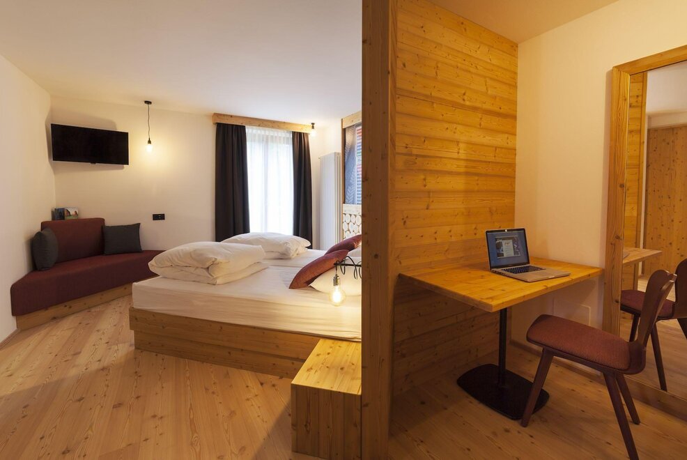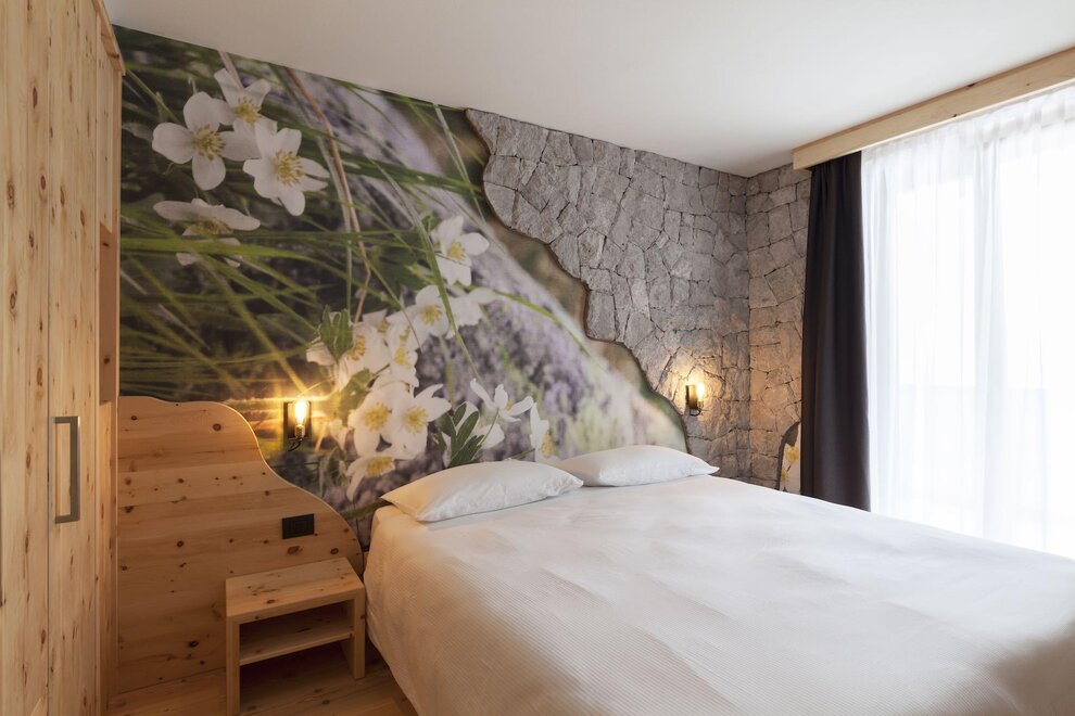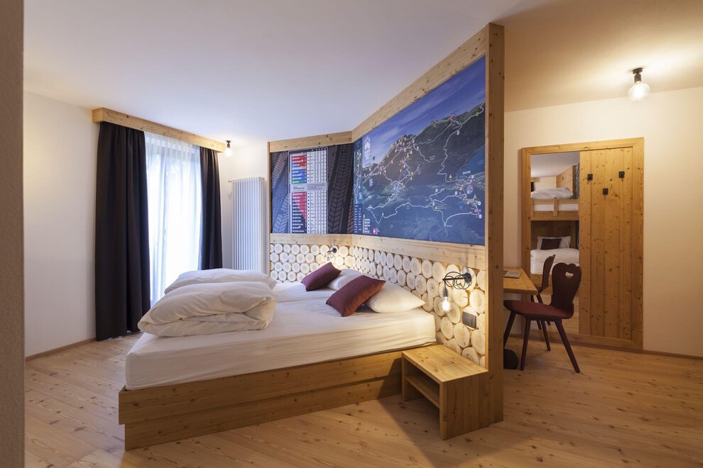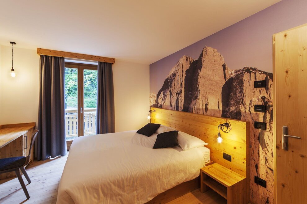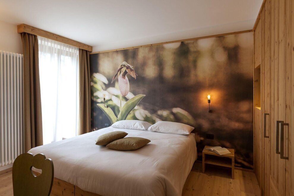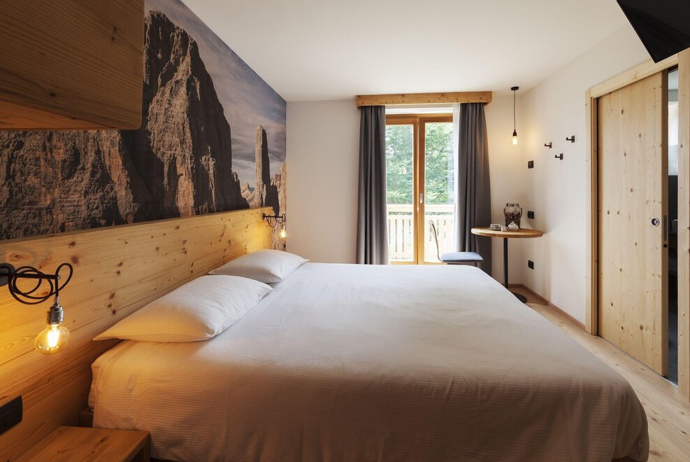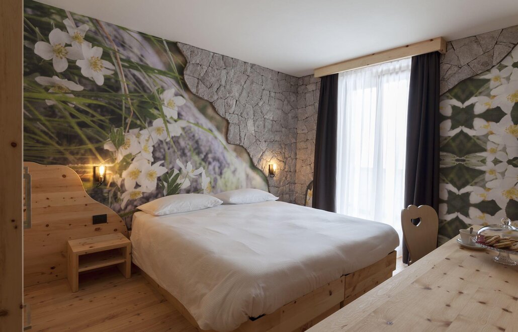 Our superior room has a welcoming and refined atmosphere. In addition to the panoramic view of the Brenta Dolomites from the private balcony, this solution offers an extra touch of luxury with a private sauna directly in the room