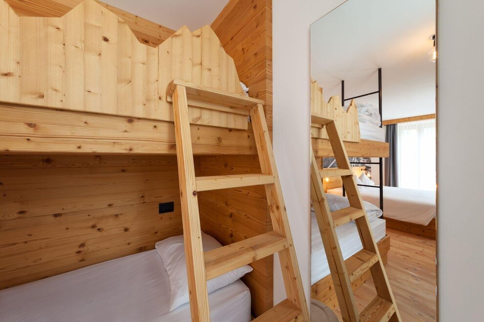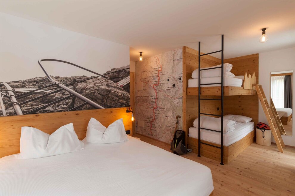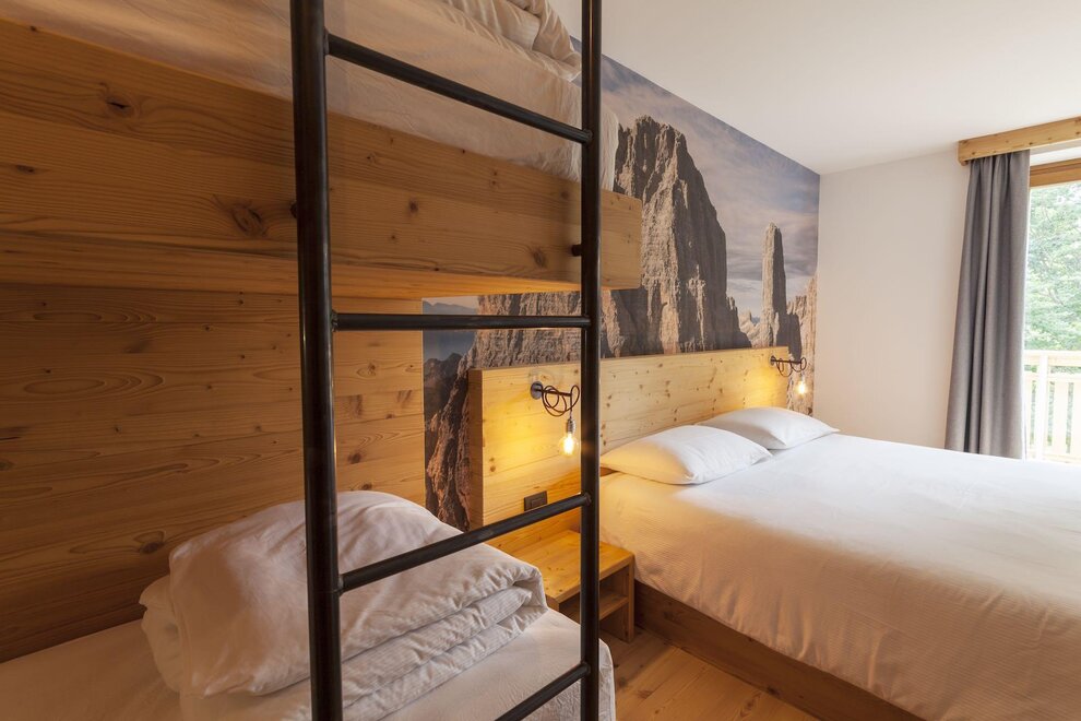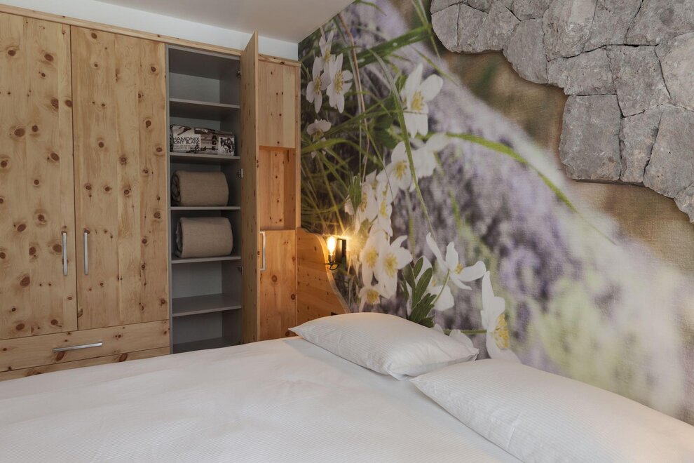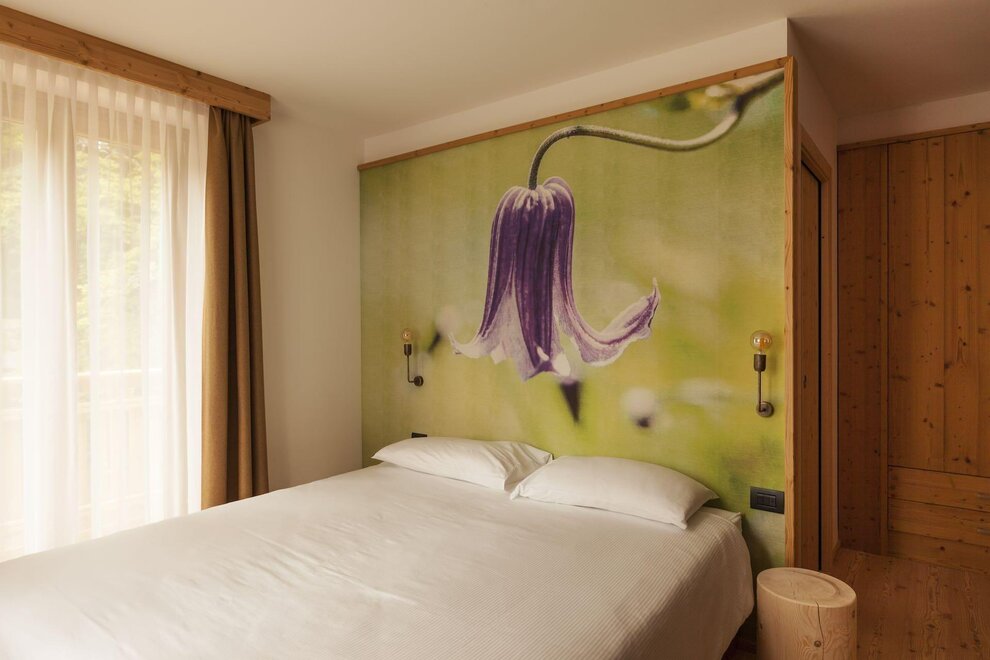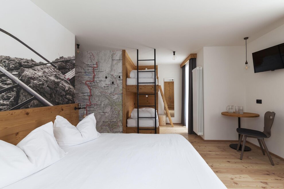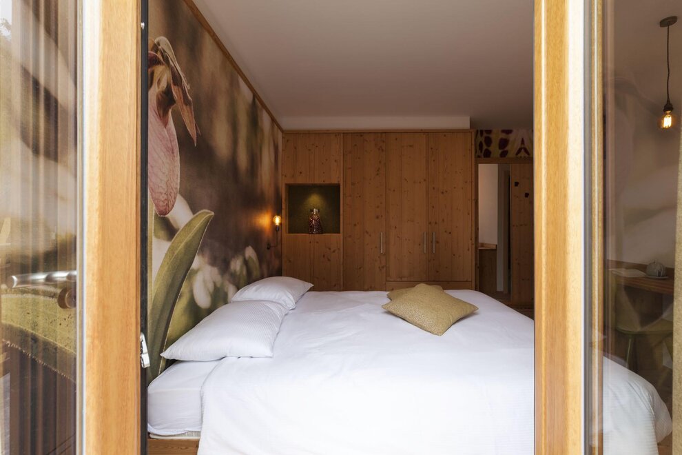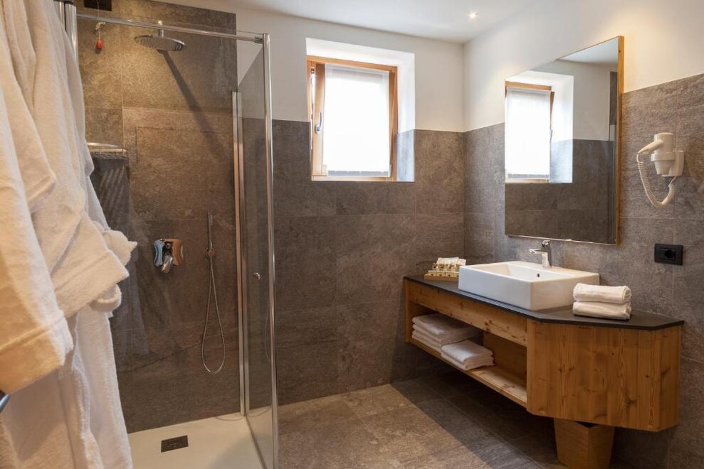Our superior room has a welcoming and refined atmosphere. In addition to the panoramic view of the Brenta Dolomites from the private balcony, this solution offers an extra touch of luxury with a private sauna directly in the room