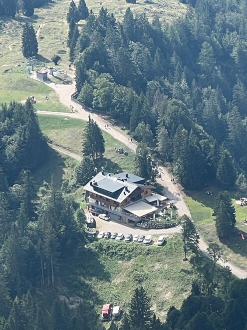In summer, overnight guests can drive to the refuge in their own cars on the access road from Andalo.