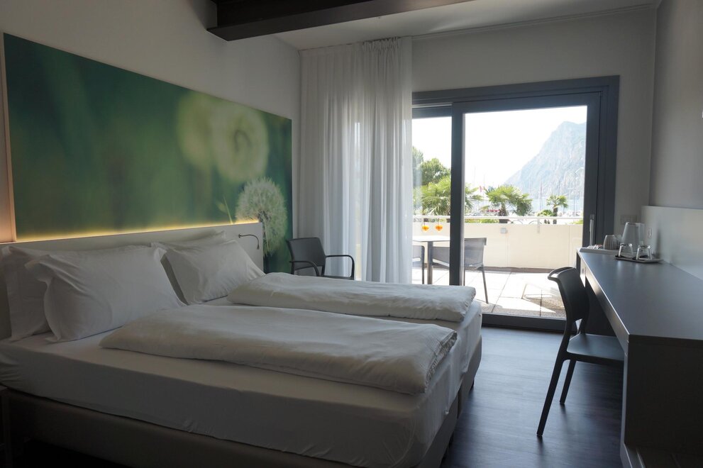 They are all situated on the south side of the Hotel, on the first or second floor. They have terrace or balcony with a beautiful lake view.