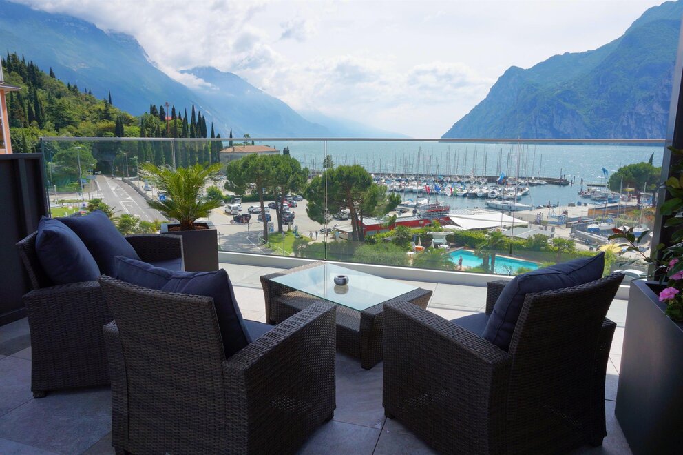 The Junior Suite is situated in the most panoramic part of the Hotel and has a large balcony with amazing lake view.