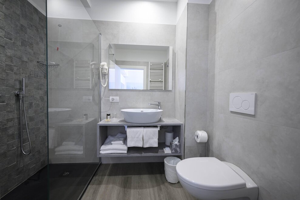 The 307 is on the third floor and has a bathroom with hydromassage shower, air conditioning/heating, small fridge, water kettle, wifi and safe.Bed distribution