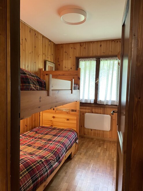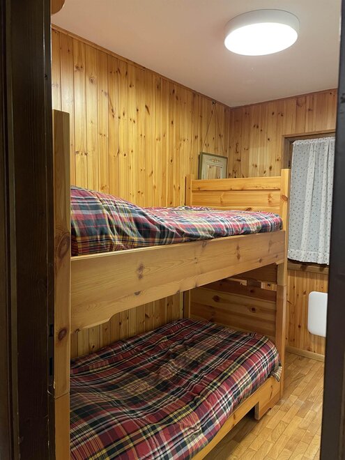 4 beds. Double bed and bunk bed.