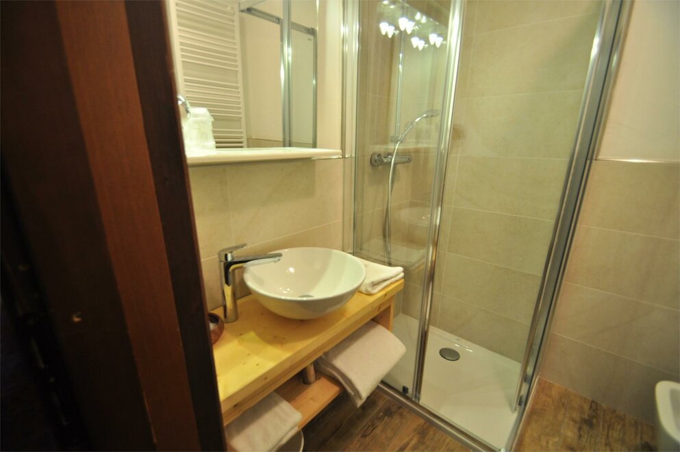 New Superior Rooms with Balcony and Dolomites View. Wardrobe and private bathroom. Very spacious and comfortable. Relax in the jacuzzi on the terrace and in the Finnish sauna. Pleasant relaxation in the lounge with wooden decks and herbal teas available. Free entry.