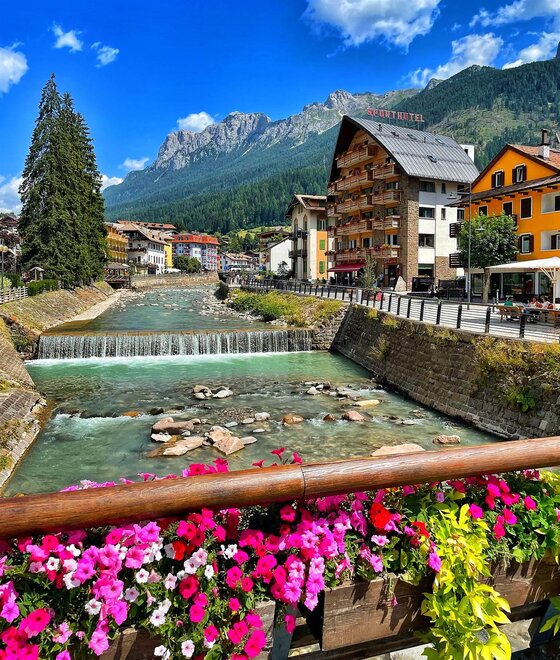 The Hotel is located in a central, quiet area, on the promenade of Moena, which is the street parallel to the main road on the opposite side of the Avisio stream.