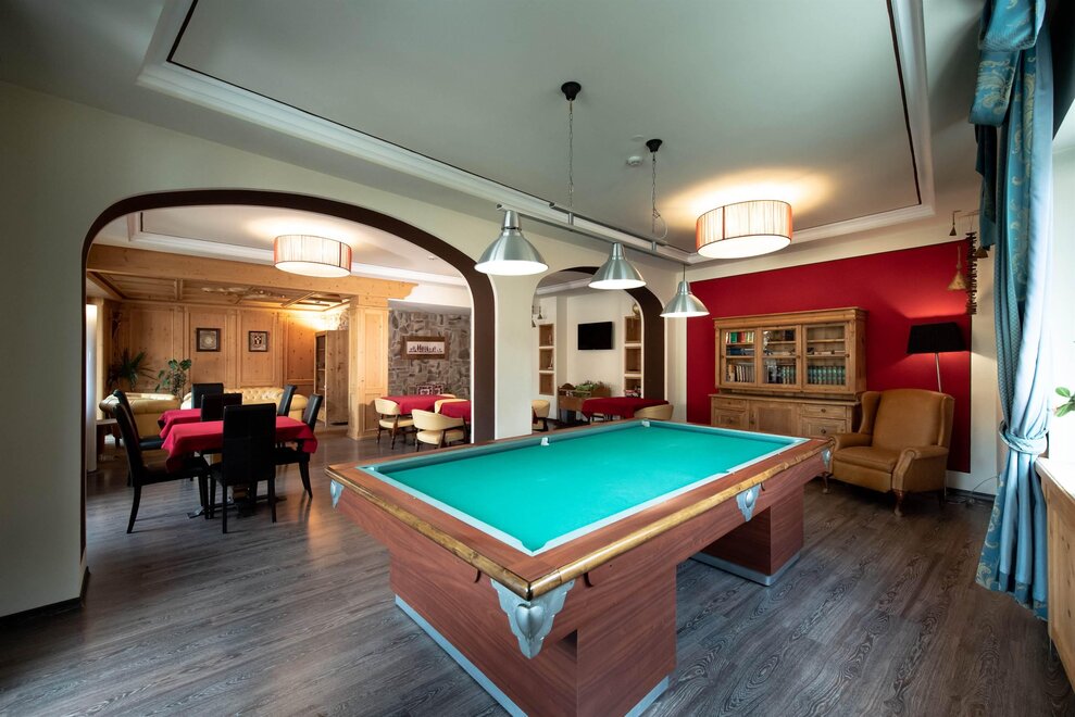 Welcome to Sporthotel San Vigilio, in Moena! An oasis of comfort and relaxation nestled in the beauty of the Dolomites. Enjoy our free Wi-Fi throughout the property, cozy common areas, and the exclusive American Lounge-Bar with SKY-TV, panoramic terrace, large lounge with reading area, board games, and billiards. Rejuvenate in our Wellness center with large hot tubs, sauna, Turkish bath, and scented showers. The cinema room, equipped with a giant screen and Dolby surround sound, is perfect for events.