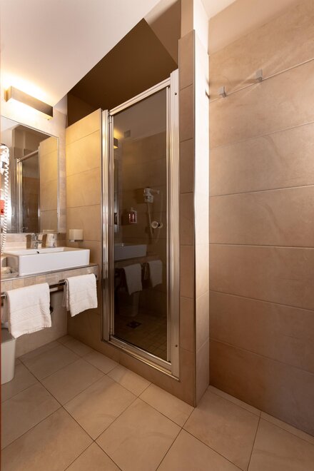 The single room, you already find the following services:private bathroom with hair dryer; colour SAT-TV and Sky-TV; safe box; minibar; WI-FI Internet connection (cable connection also available); programmable alarm clock. All rooms at the Sport Hotel San Vigilio in Moena are non-smoking.