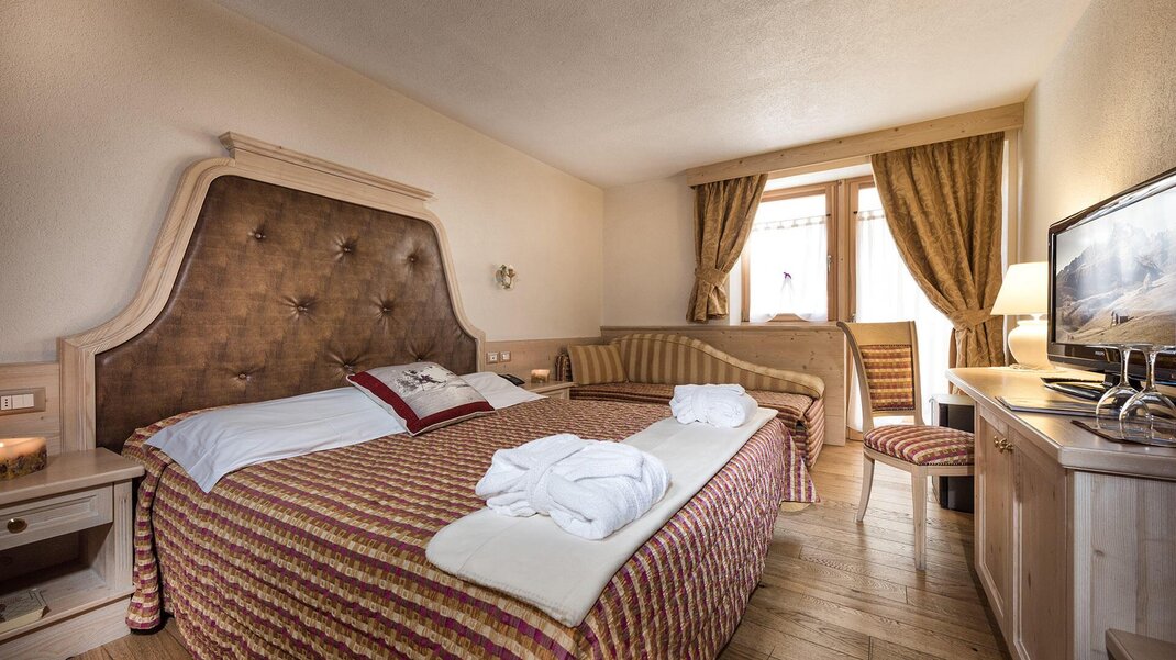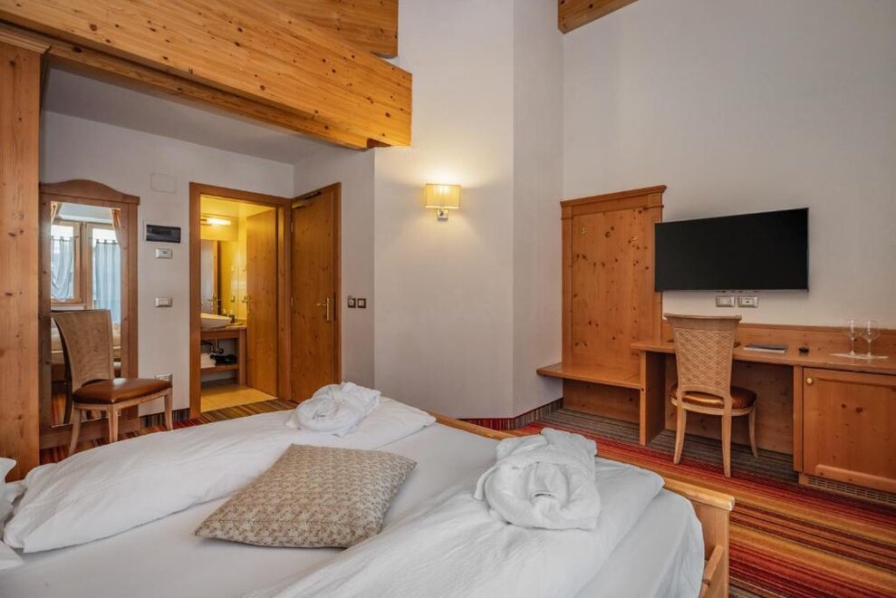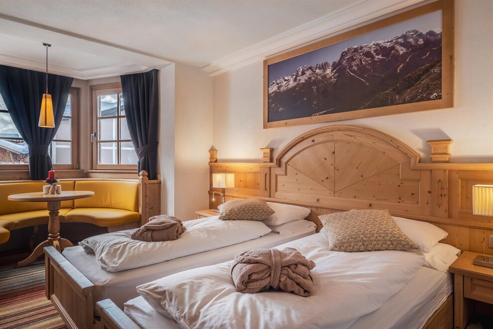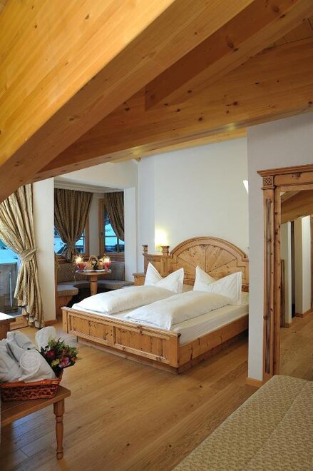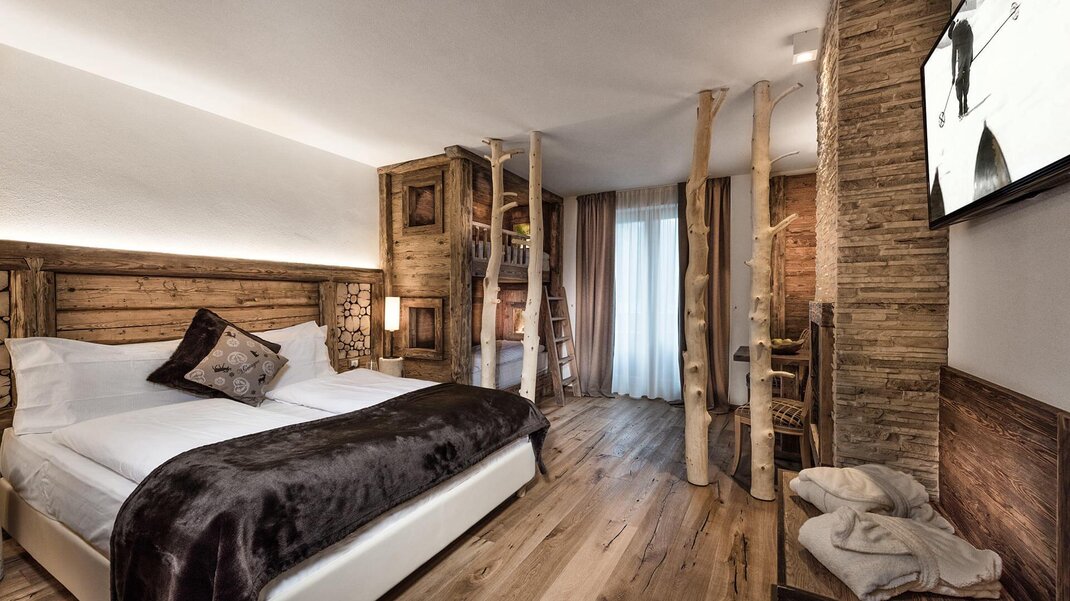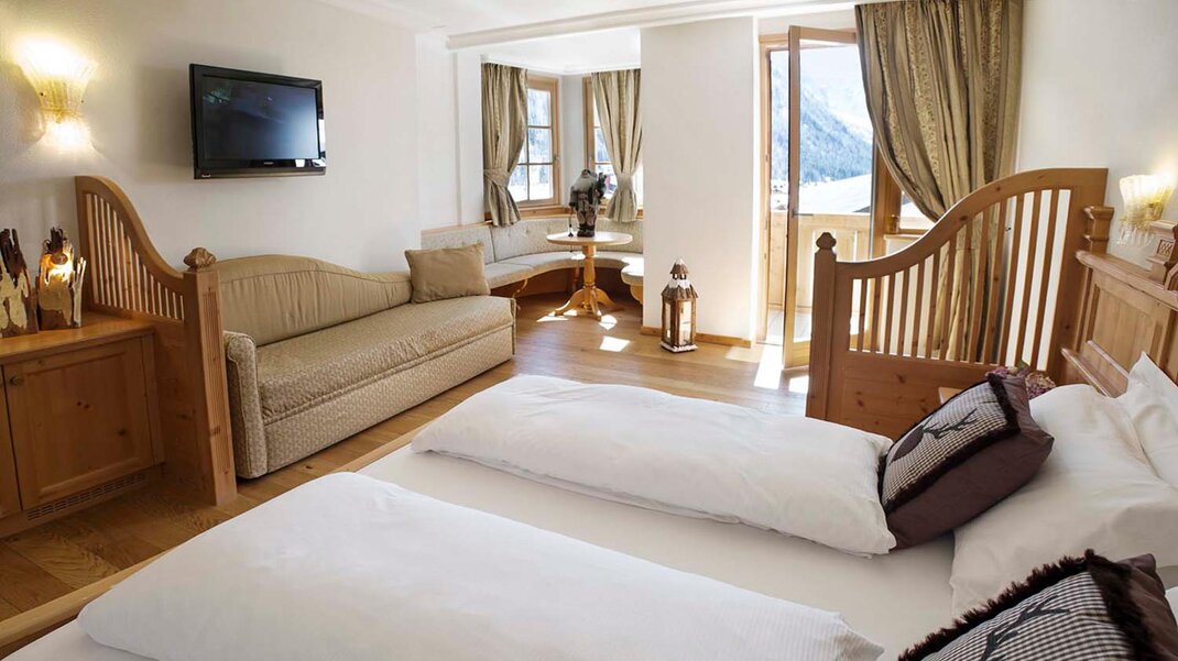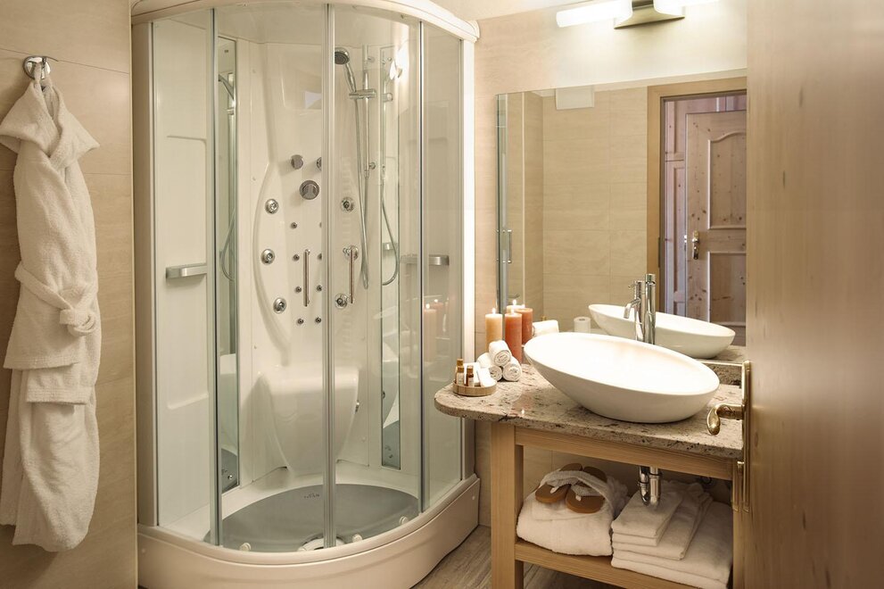 Cozy atmospheres in classic alpine style, almost all with balcony and shower cabin with hydromassage, towel warmer, custom underfloor heating, 32” LCD screen, SKY TV, Wi-Fi Internet, reading corner, SPA Kit (for adults), minibar, hairdryer, telephone, electronic safe (also for PC) and complimentary toiletries. Suitable for up to 2 people, and measure from 20 to 26 sqm.