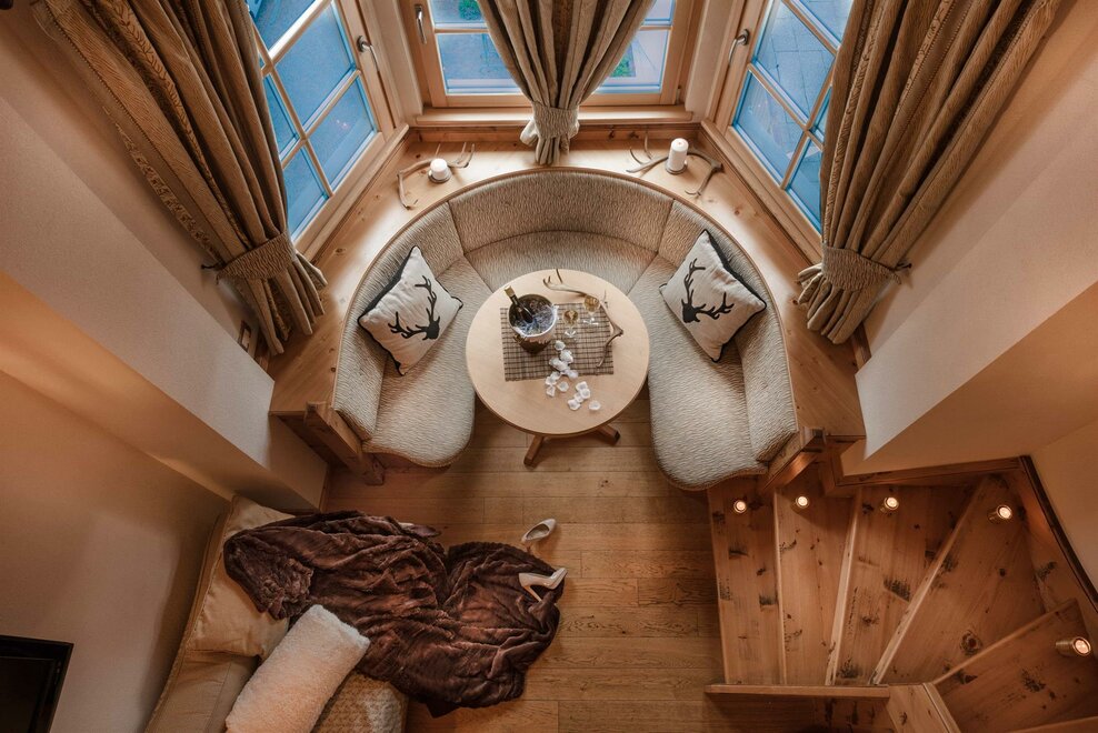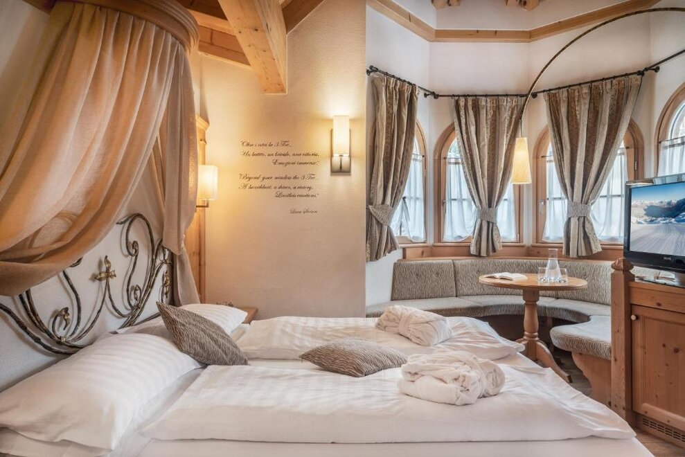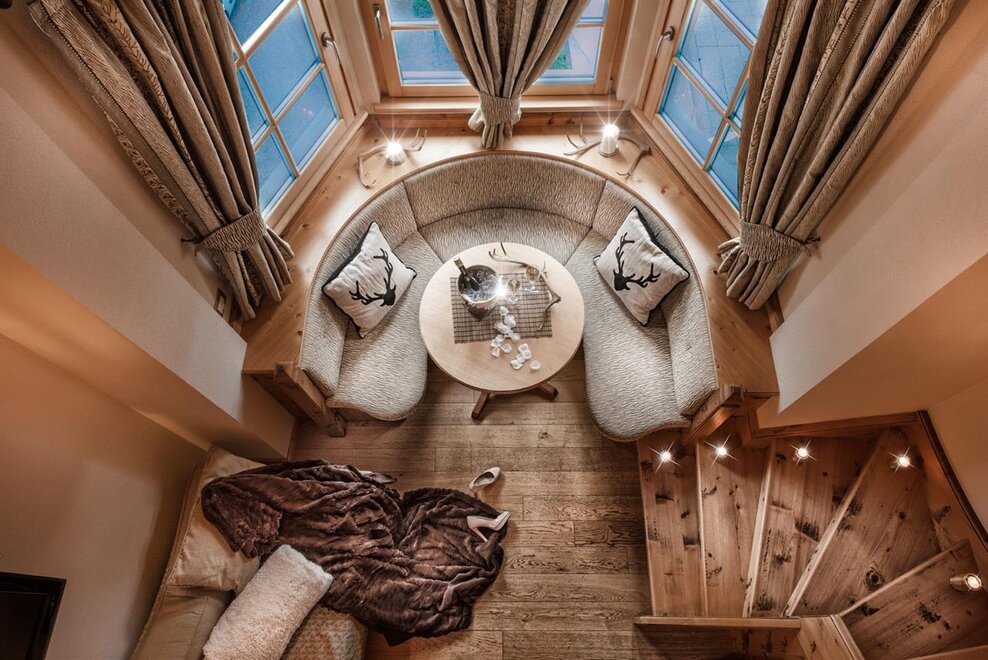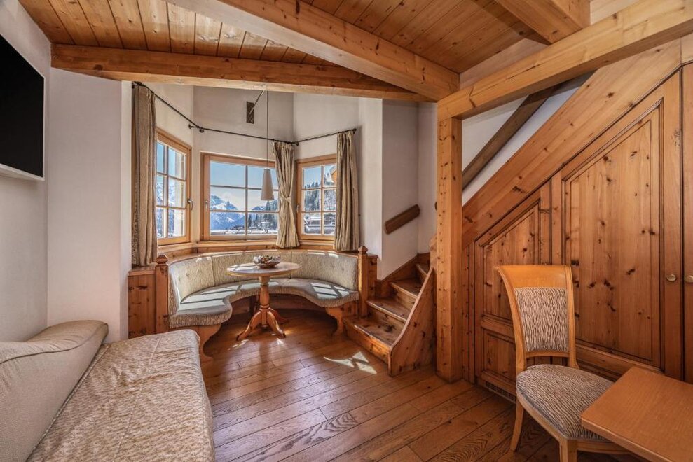 Junior Suite with lovely sitting area in bow window, a roof terrace of Madonna di Campiglio,
