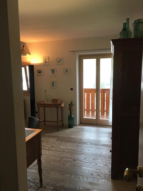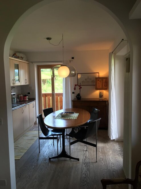 The apartment is located in the hamlet of Transacqua, a 4-minute walk from the Primiero fair center; in a particularly convenient location, in front of the supermarket, but very quiet. It has a beautiful view of the Dolomites and the valley, is very sunny, and has large terraces facing the sun. Spacious kitchen with dishwasher and everything you need, living room, two rooms with double beds, and two bathrooms.