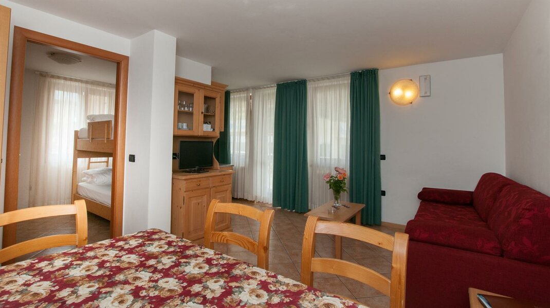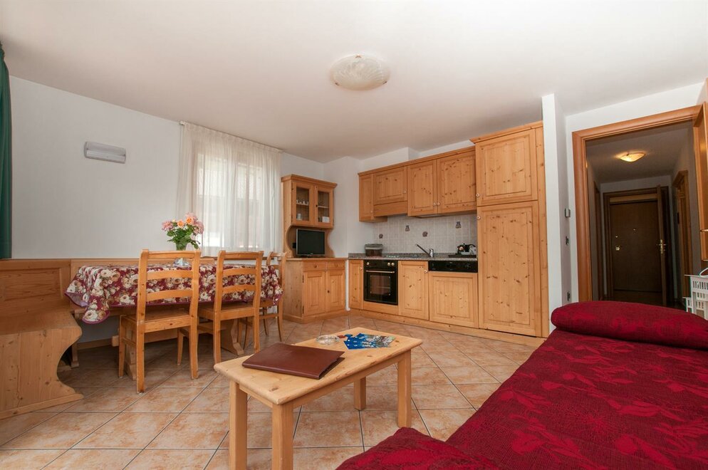 This brand new mountain style home, with several apartments, is located next to the Hotel Val di Sole and is managed by the same staff. The apartments can host up to 4-6 people, each with detailed furnishings and all comforts. Each apartment has a: Sat TV, dishwasher, safe, hairdryer, microwave oven, parking space-garage, initial linen. It is also possible to access the following amenities of the hotel: Spa, UVA tanning lamps, Indoor swimming pool with waterfall, Technogym, beauty and massage treatments.