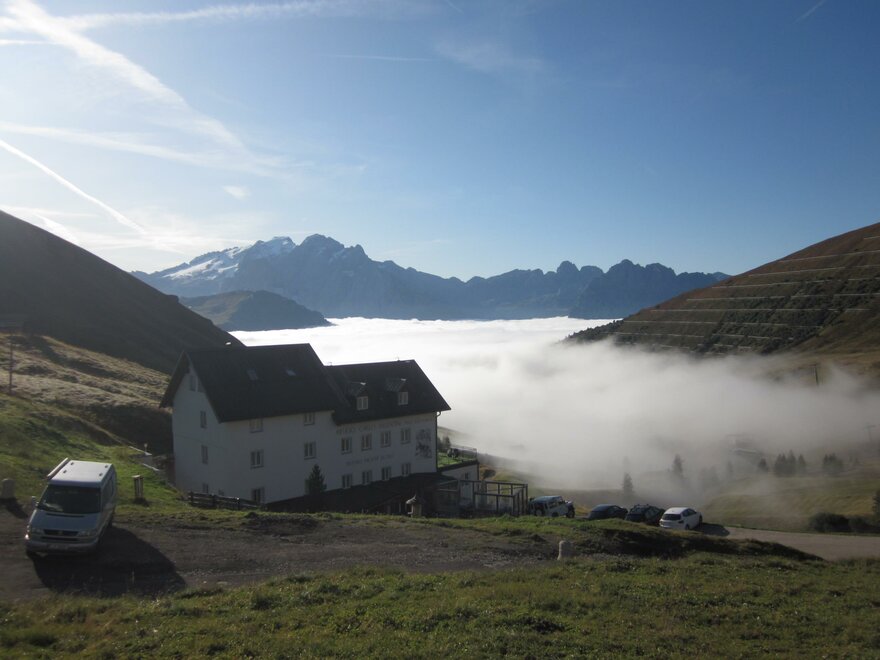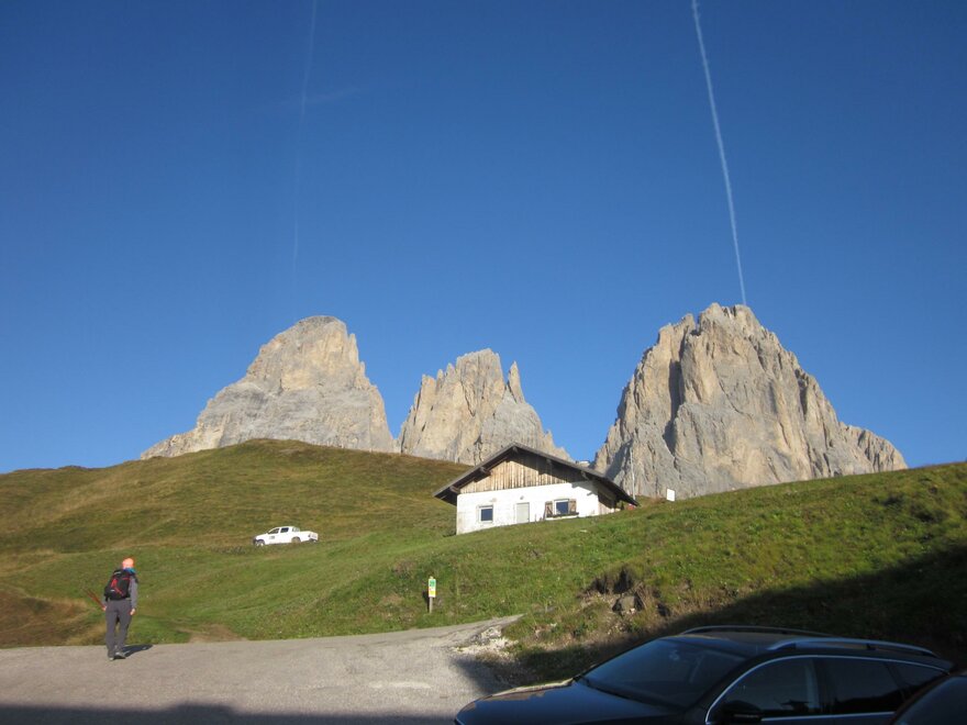 The refuge is easily accessible by car: park at Passo Sella and continue on foot for about 10 minutes (difficulty T).