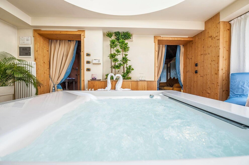 AMENITIES: Hydro-massage Musical library Television with video on demand Breakfast served in room Dinner served in room In room massages Balcony Secret garden Minibar and safe