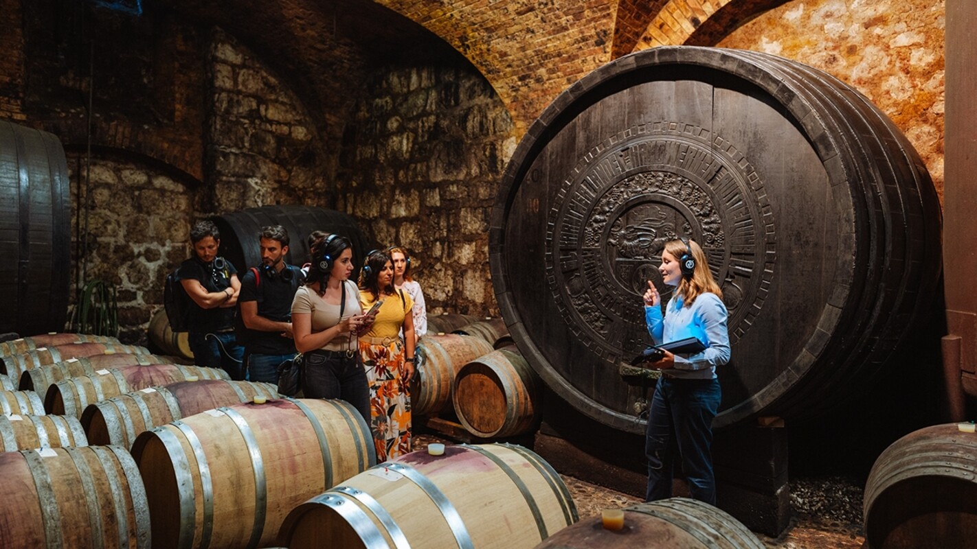 Then descend into the late 1800s underground cellar to see the imposing Barrel of the Dragon and the vault of old bottles. Here you can listen to the anecdotes of our family.