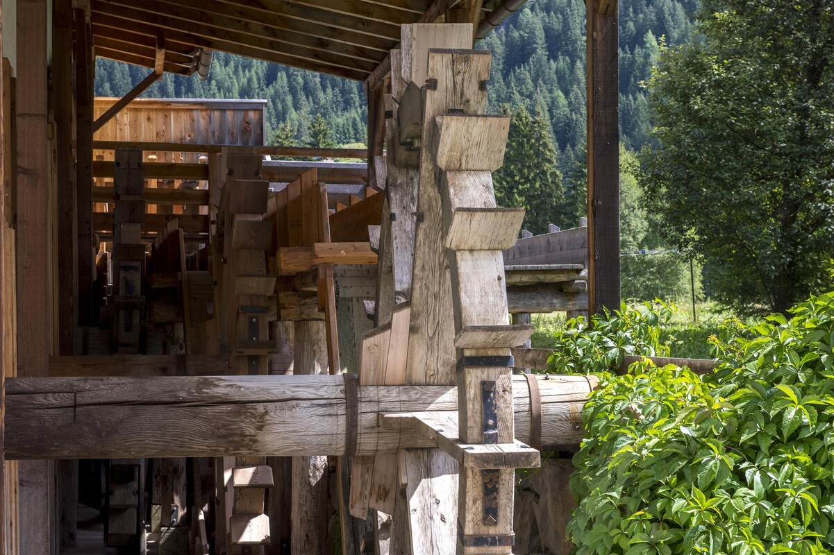 A rare place, where water does more than simply flow: it still stirs memories. The "Molin de Pezol", the only one of its kind in Val di Fassa, is the last remaining testament to the centuries-old art of milling and preserves the charm of ancient knowledge intact. Stepping inside is like taking a brief journey back in time, amidst the clatter of the millstones, the rhythm of the wheels and gestures that tell the story of a simple, ingenious life deeply rooted in the local landscape. During the guided tour, you will discover up close how the power of water, skilfully channelled, still drives the mill’s perfect mechanisms today. You will be able to observe the three large paddle wheels, see the barley polisher and the two grain millstones in operation, and be amazed by a nineteenth-century system that continues to work just as it did in the past.