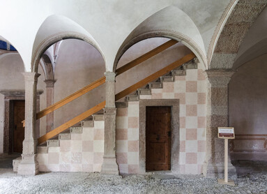 Tutta la costruzione è di gusto rinascimentale, anche le decorazioni alle pareti, realizzate nell’Ottocento ma copiate da Palazzo Assessorile a Cles, dove erano state create proprio nel Cinquecento da Marcello Fogolino.